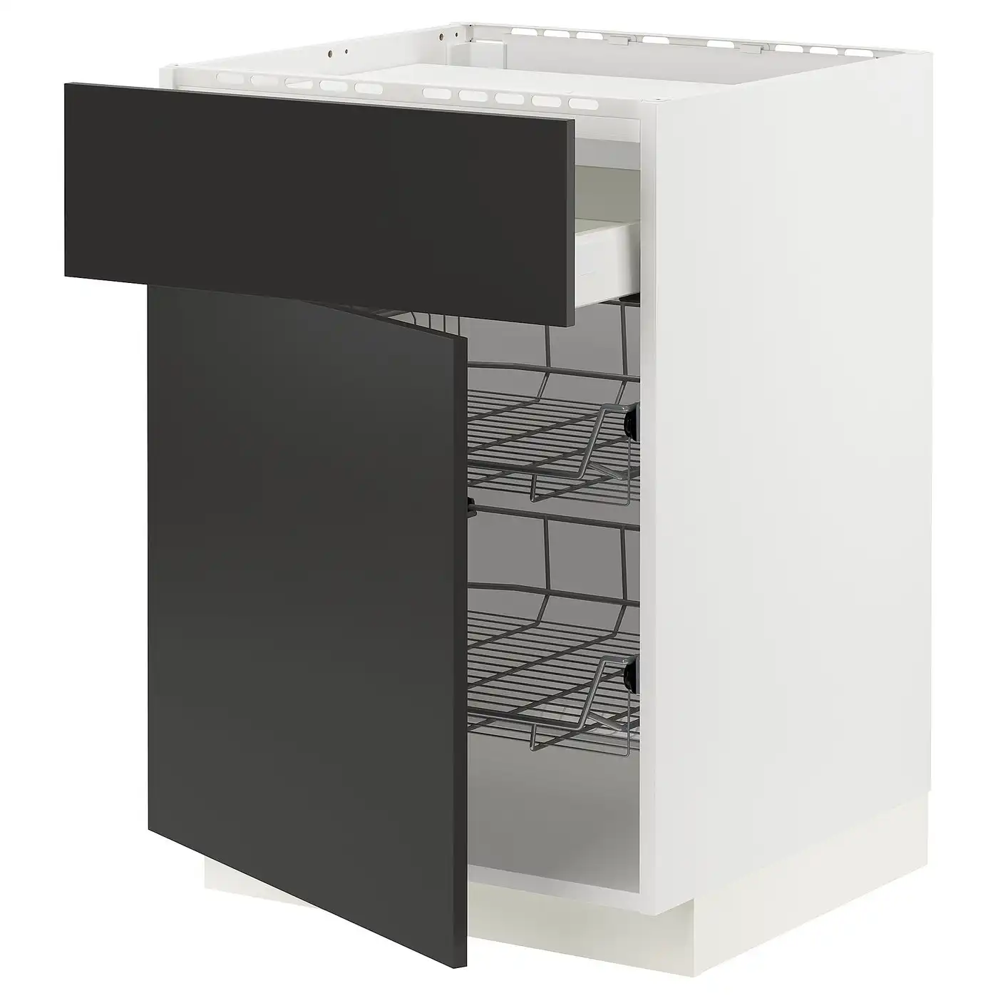 METOD / MAXIMERA Base cab f hob/drawer/2 wire bskts - white/Nickebo matt anthracite 60x60 cm