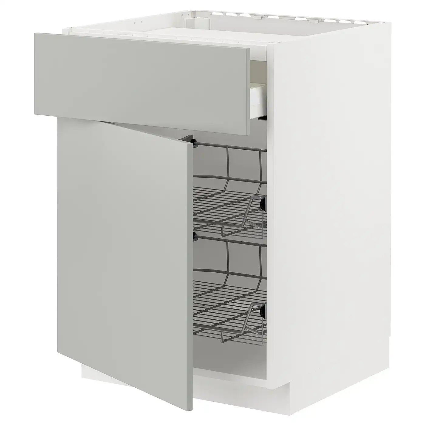 METOD / MAXIMERA Base cab f hob/drawer/2 wire bskts - white/Havstorp light grey 60x60 cm