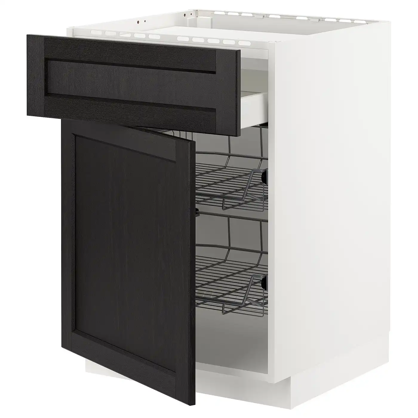 METOD / MAXIMERA Base cab f hob/drawer/2 wire bskts - white/Lerhyttan black stained 60x60 cm
