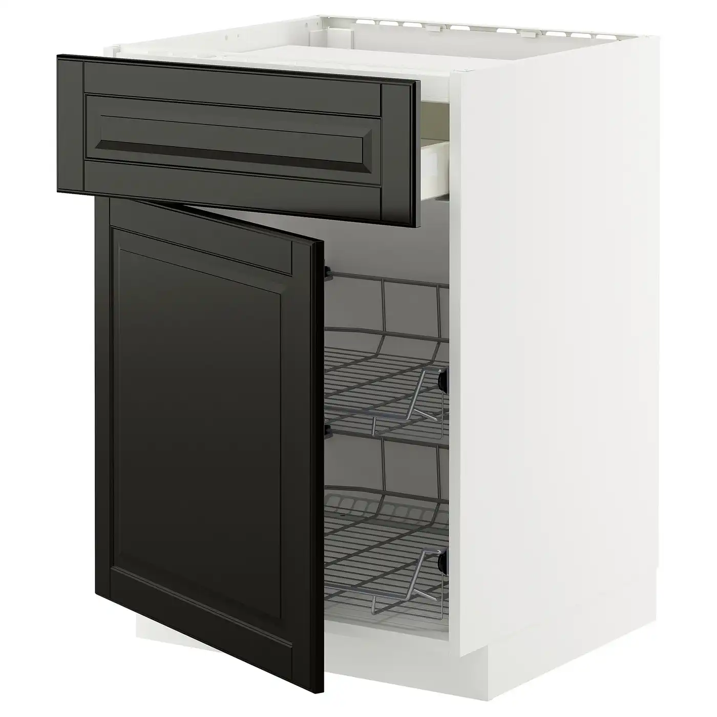 METOD / MAXIMERA Base cab f hob/drawer/2 wire bskts - white/Bodbyn black 60x60 cm