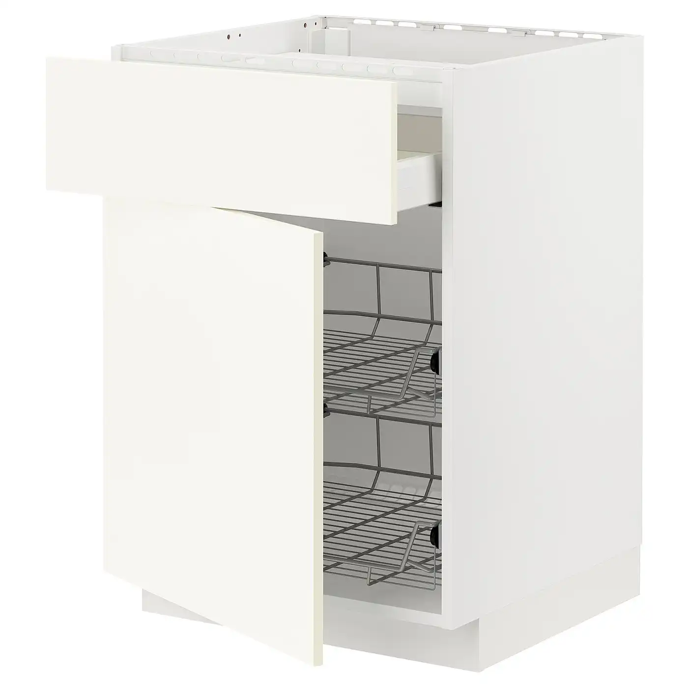 METOD / MAXIMERA Base cab f hob/drawer/2 wire bskts - white/Bodbyn off-white 60x60 cm