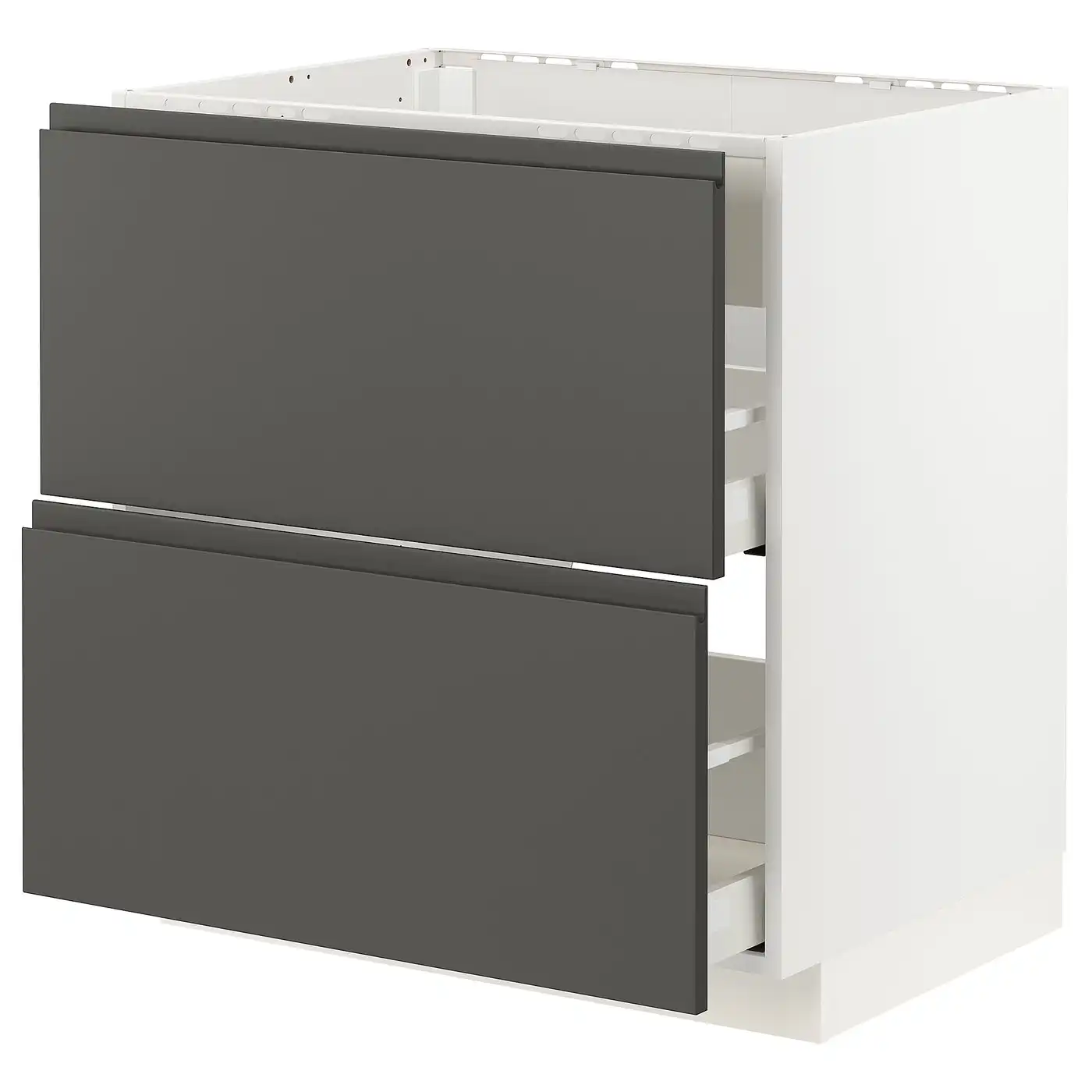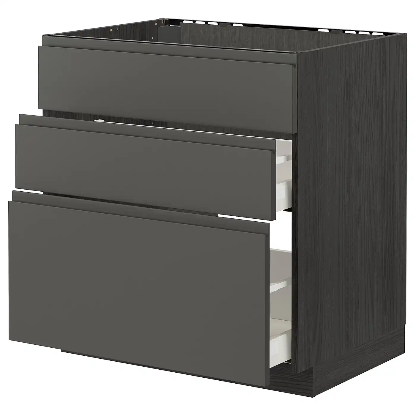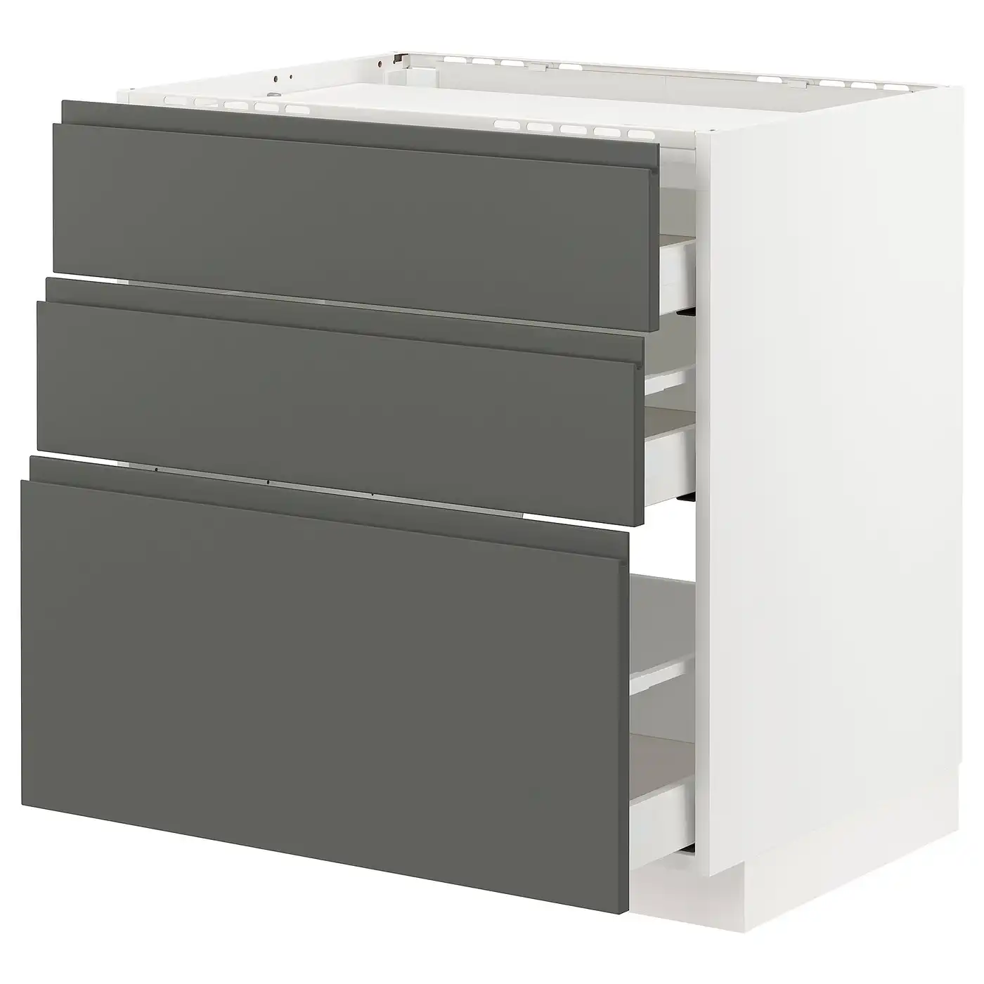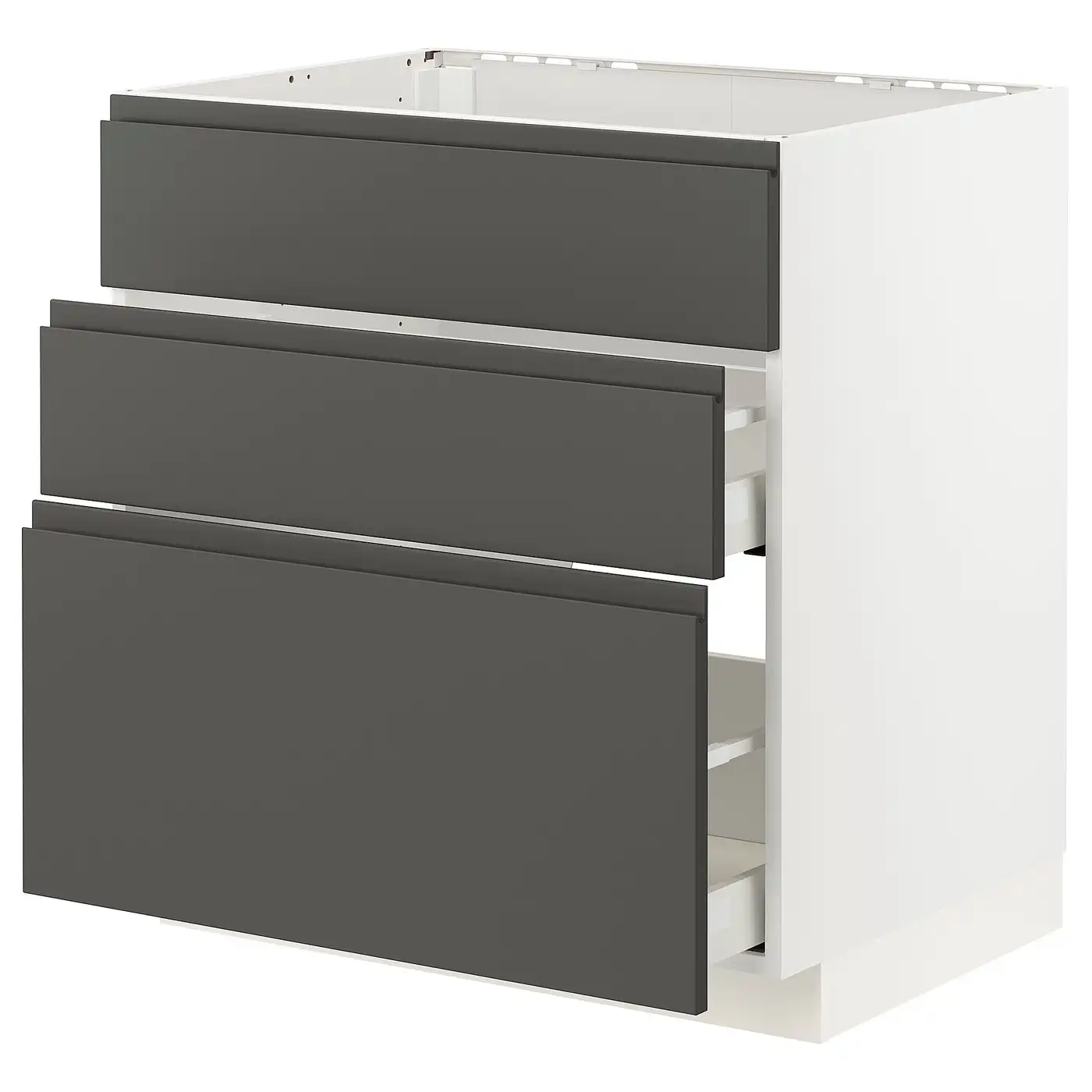 METOD / MAXIMERA Base cab f hob/3 fronts/3 drawers - white/Voxtorp dark grey 80x60 cm