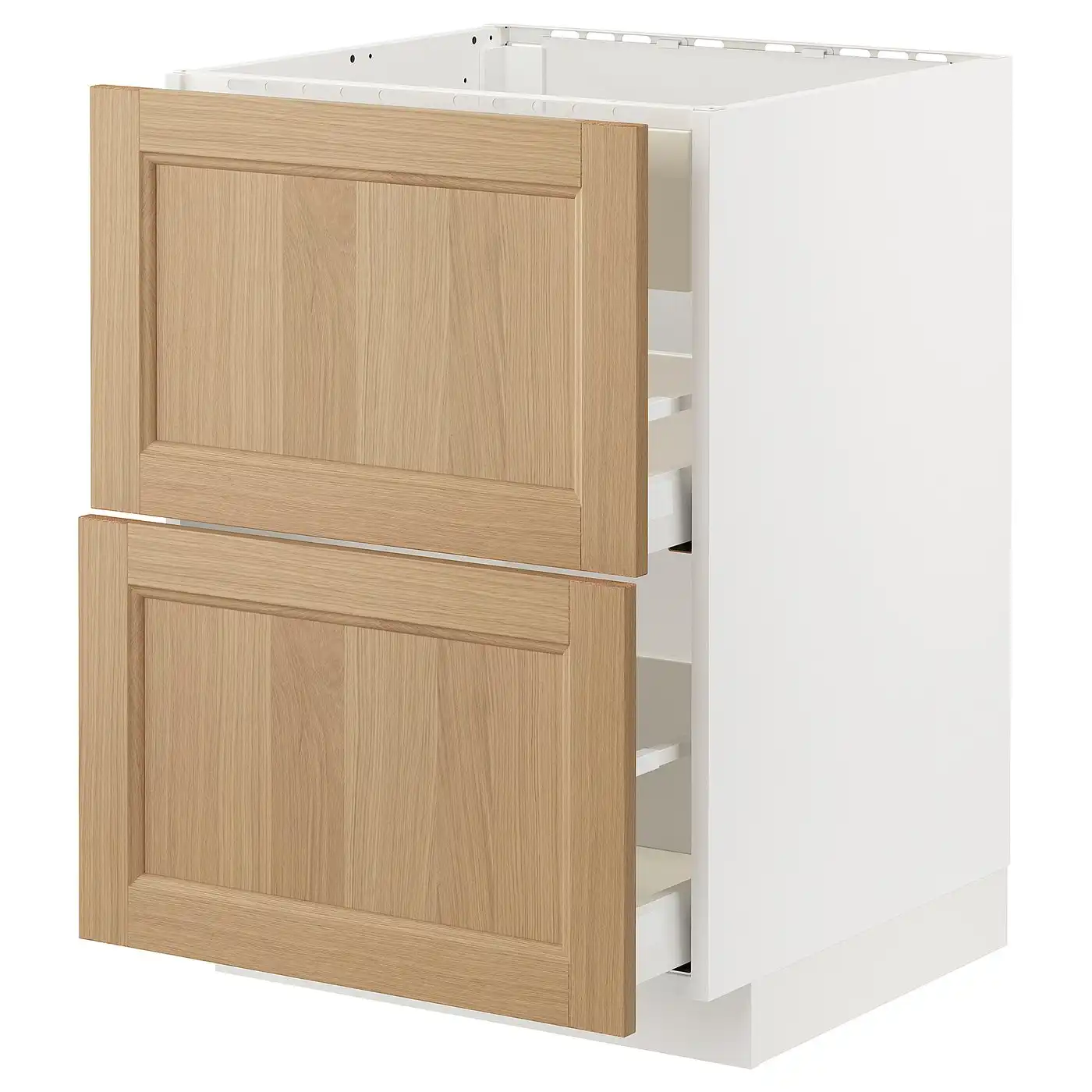 METOD / MAXIMERA Base cab f hob/drawer/2 wire bskts - white/Voxtorp oak effect 60x60 cm