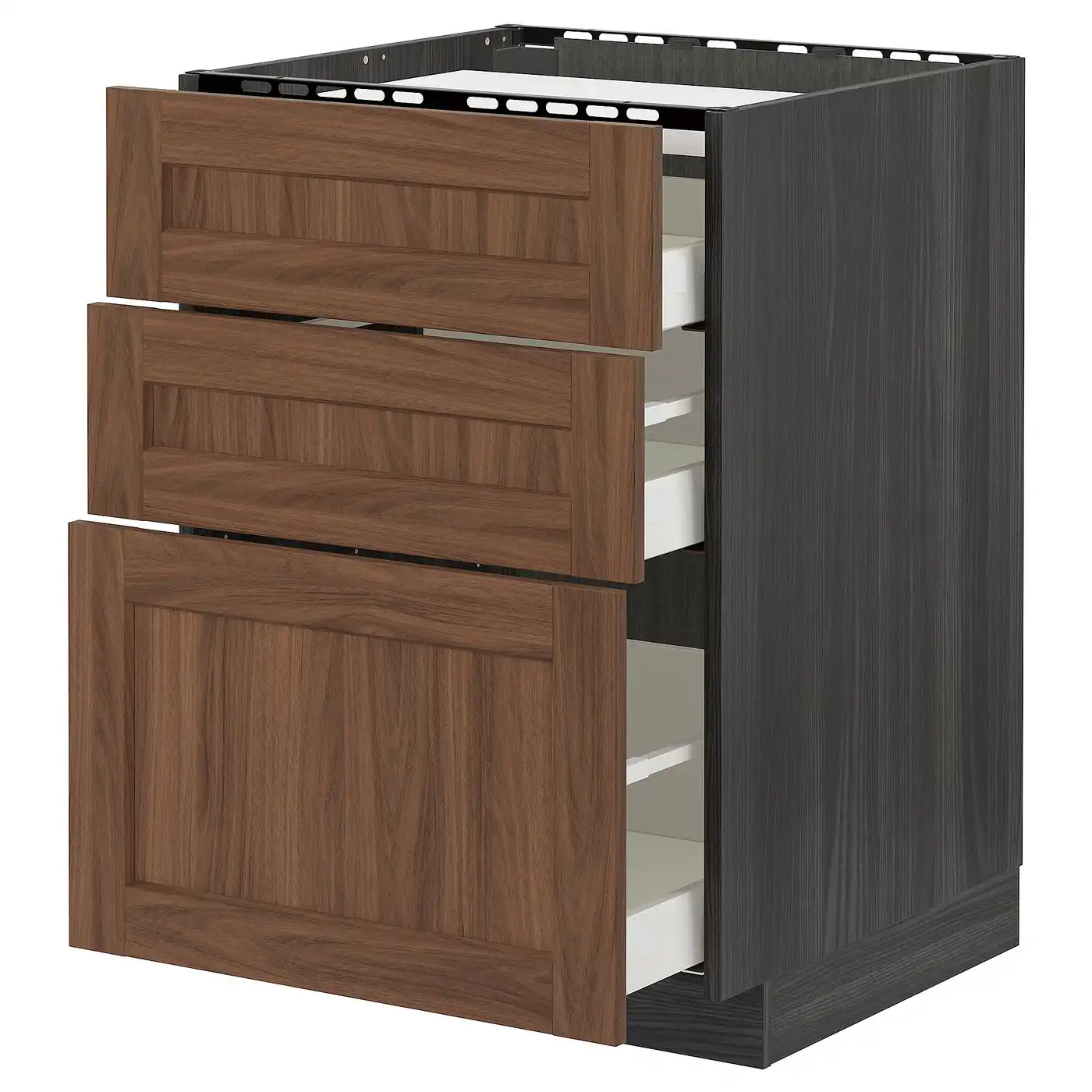 METOD / MAXIMERA Base cabinet with 3 drawers - black Enköping/brown walnut effect 60x60 cm