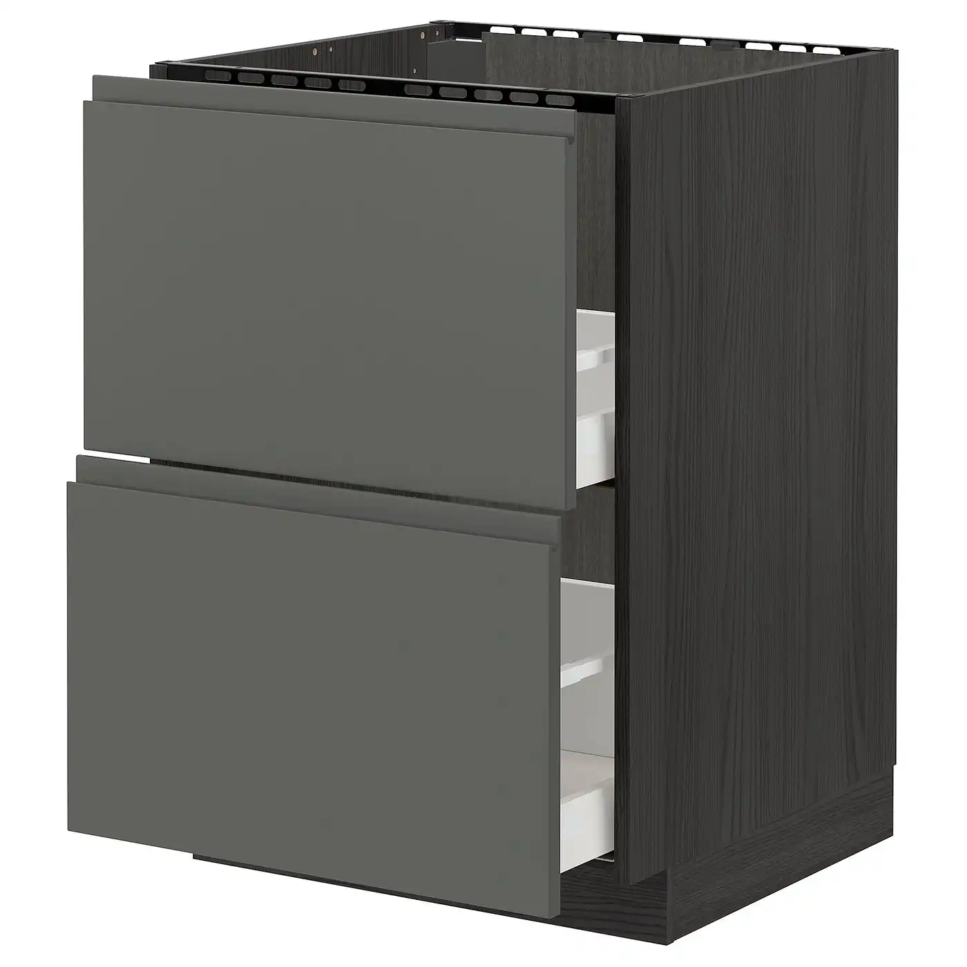 METOD / MAXIMERA Base cb 2 fronts/2 high drawers - black/Voxtorp dark grey 60x60 cm