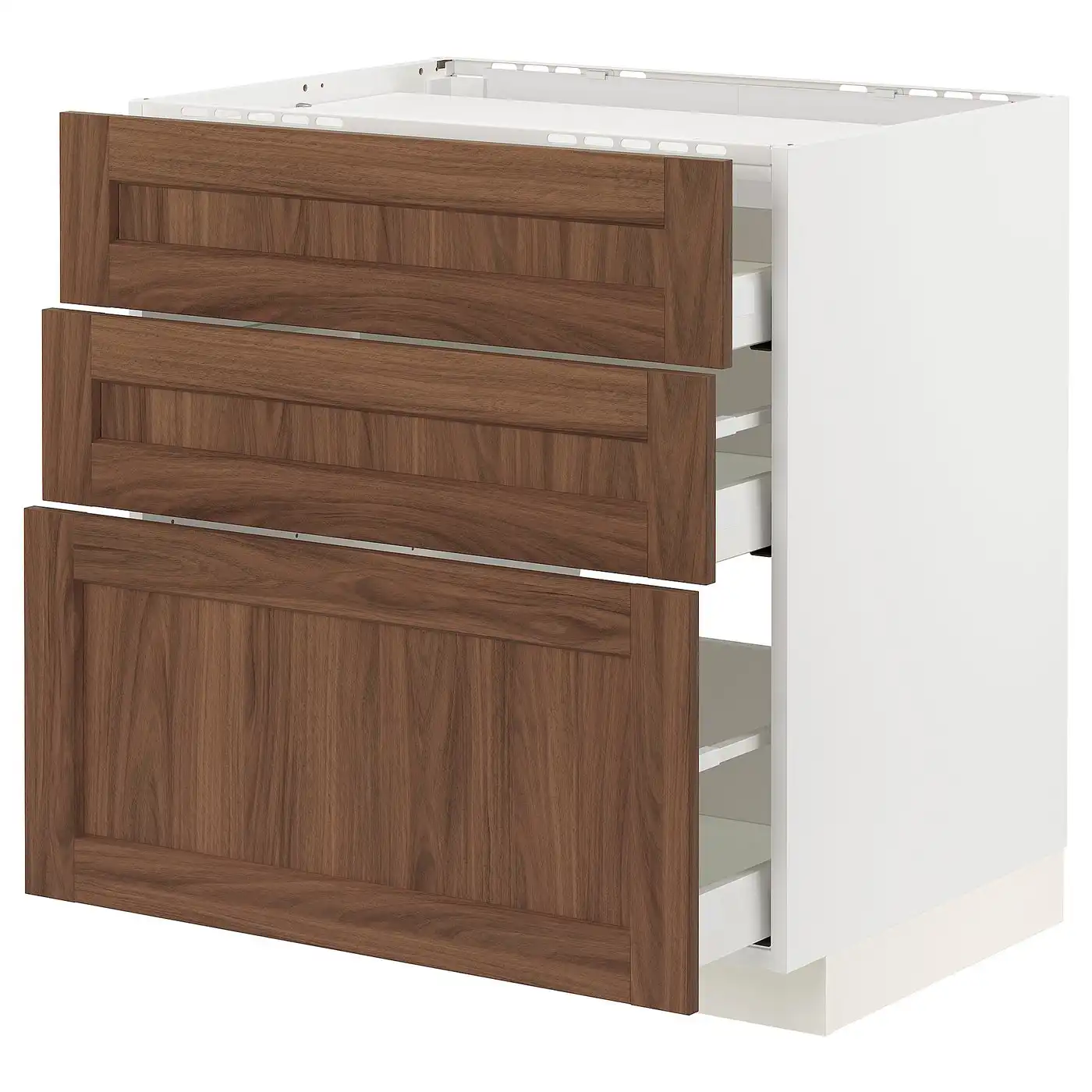 METOD / MAXIMERA Base cab f hob/3 fronts/3 drawers - white Enköping/brown walnut effect 80x60 cm