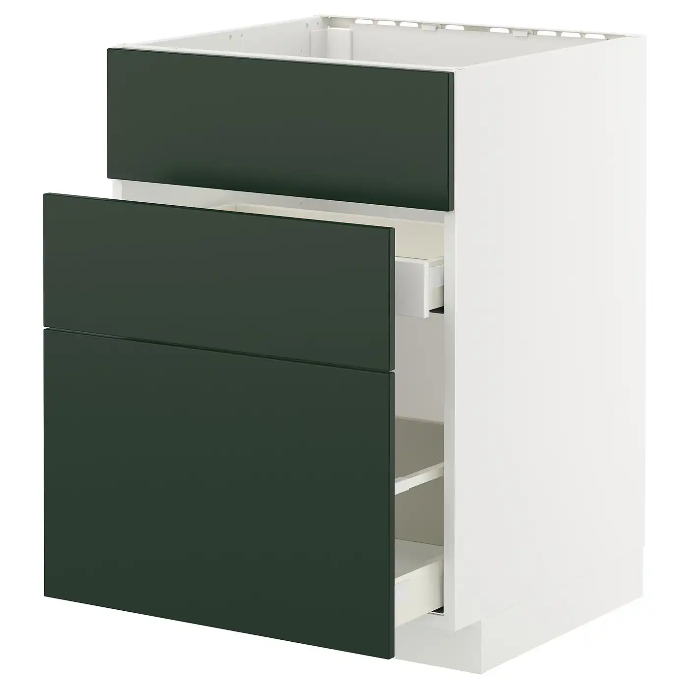 METOD / MAXIMERA Base cab f sink+3 fronts/2 drawers - white/Havstorp deep green 60x60 cm