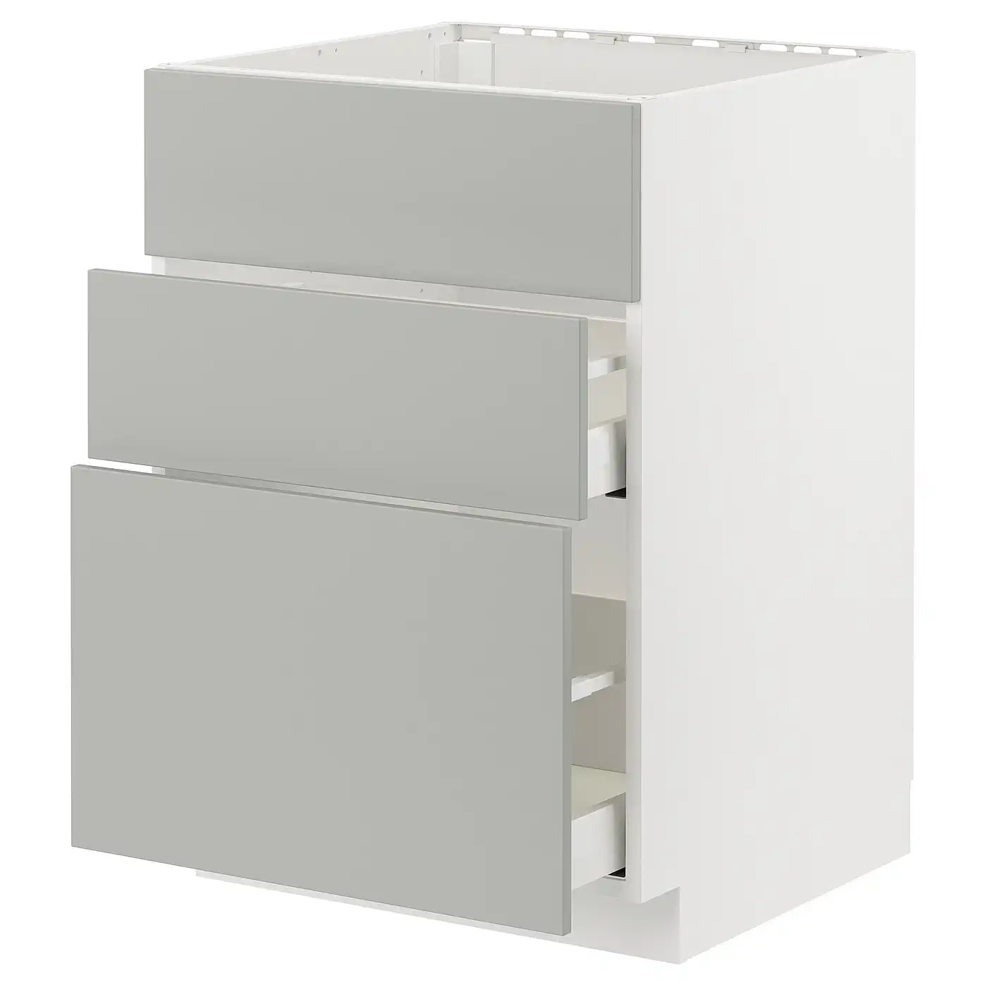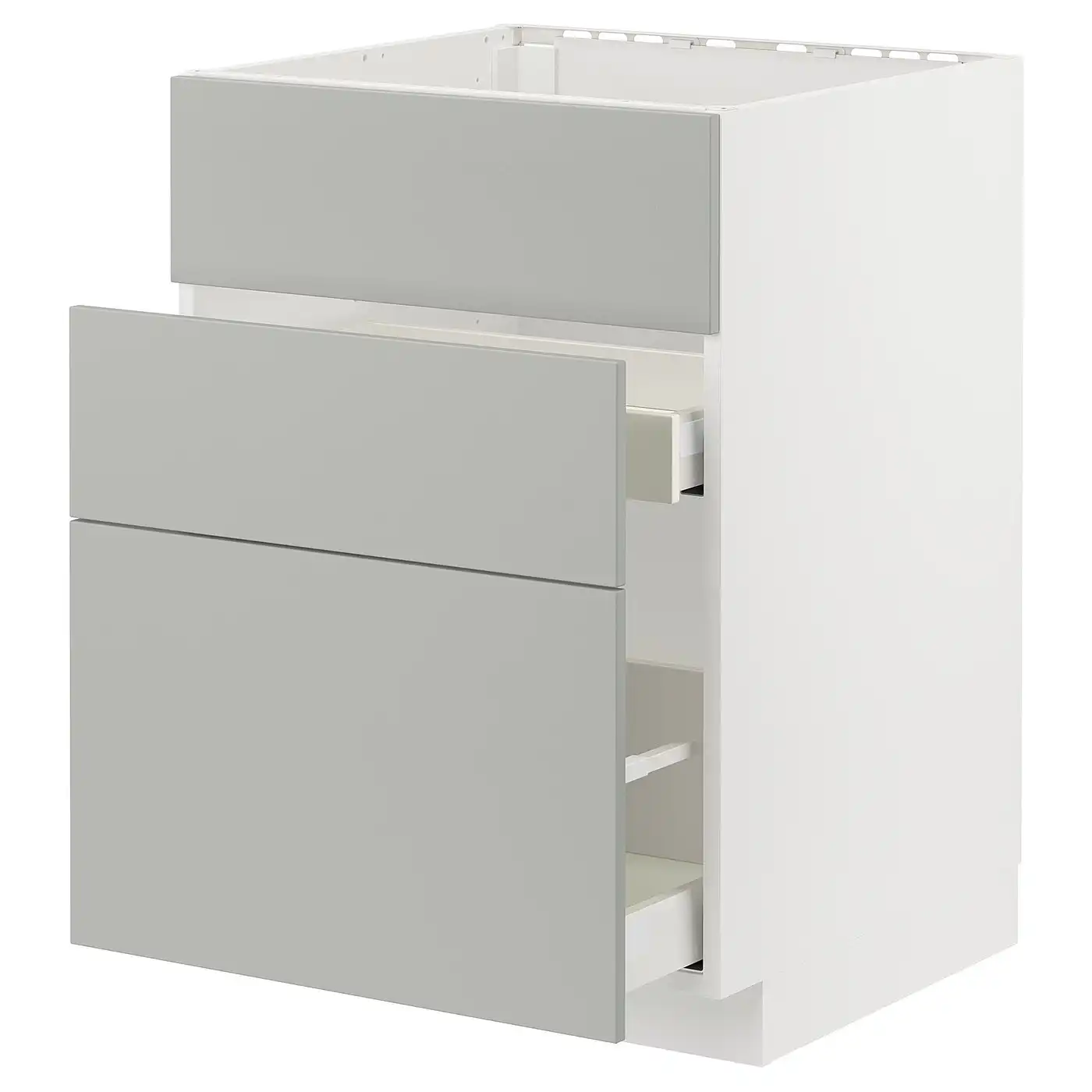 METOD / MAXIMERA Base cab f sink+3 fronts/2 drawers - white/Havstorp light grey 60x60 cm