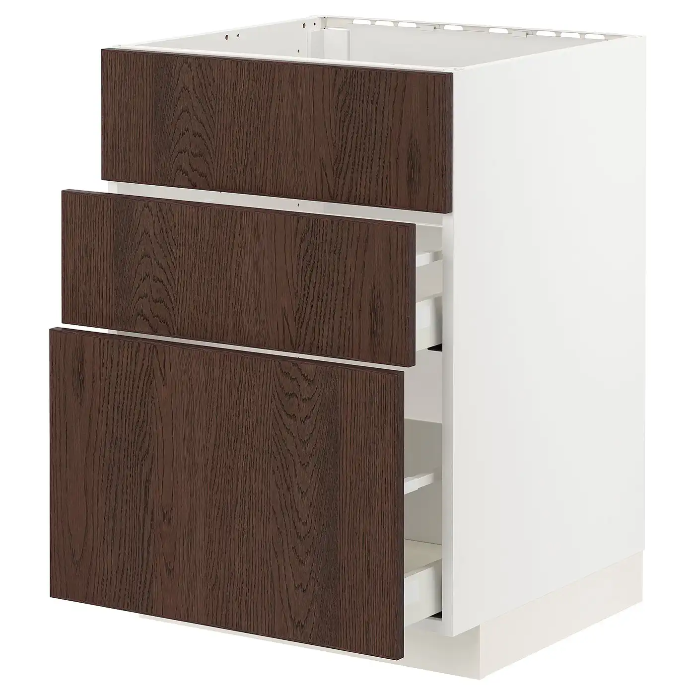 METOD / MAXIMERA Base cab f sink+3 fronts/2 drawers - white/Sinarp brown 60x60 cm
