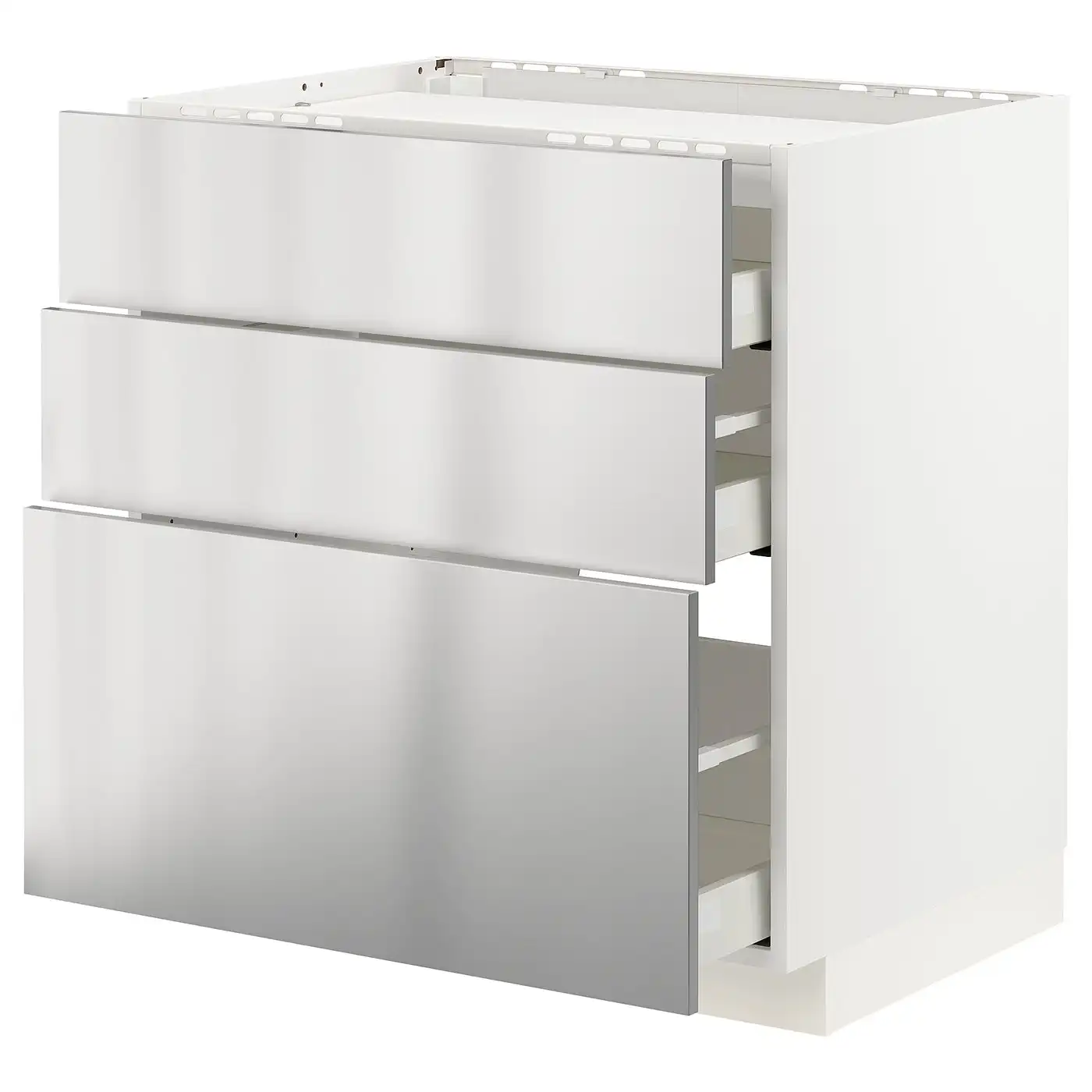 METOD / MAXIMERA Base cabinet with 3 drawers - white/Vårsta stainless steel 80x60 cm