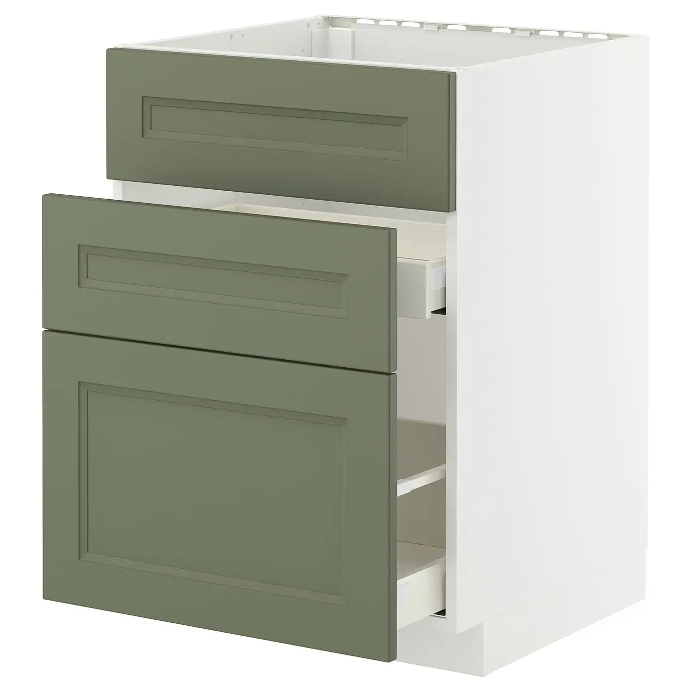 METOD / MAXIMERA Base cab f sink+3 fronts/2 drawers - white/Axstad grey-green 60x60 cm