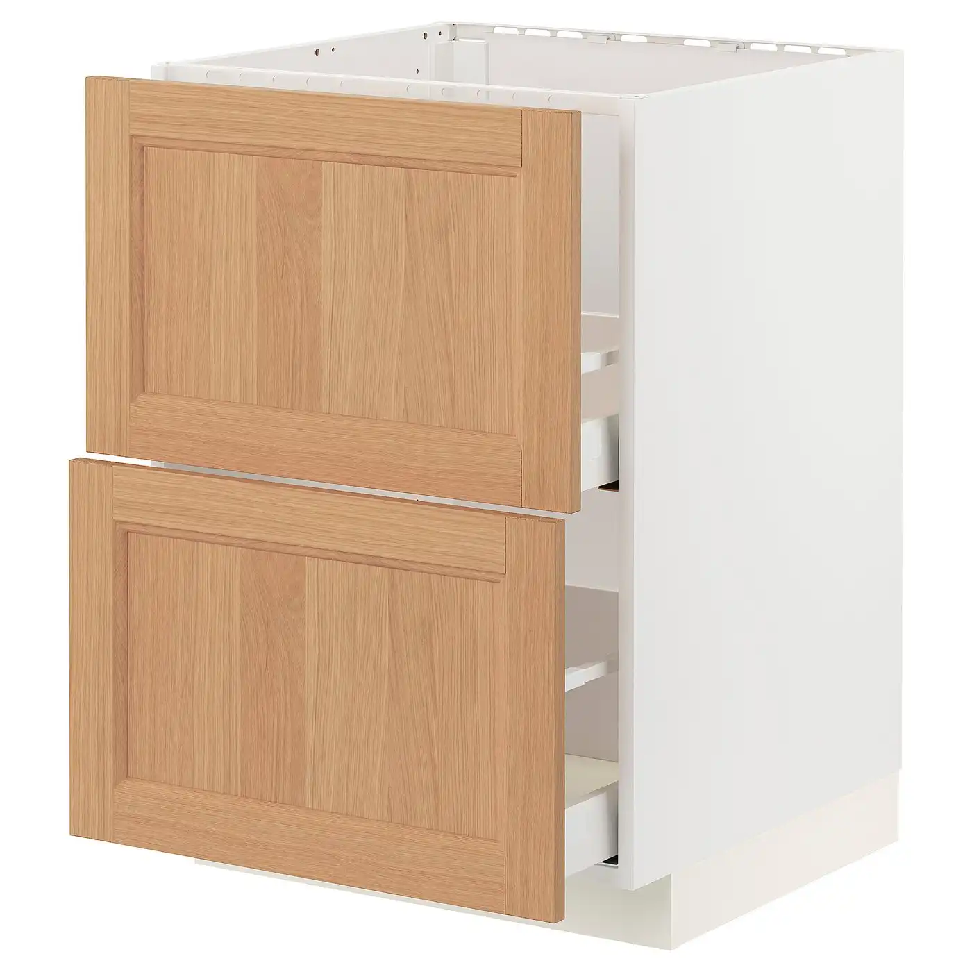 METOD / MAXIMERA Base cab f sink+2 fronts/2 drawers - white/Vedhamn oak 60x60 cm