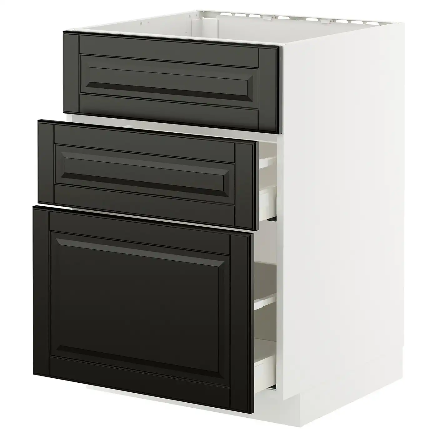 METOD / MAXIMERA Base cab f sink+3 fronts/2 drawers - white/Bodbyn black 60x60 cm