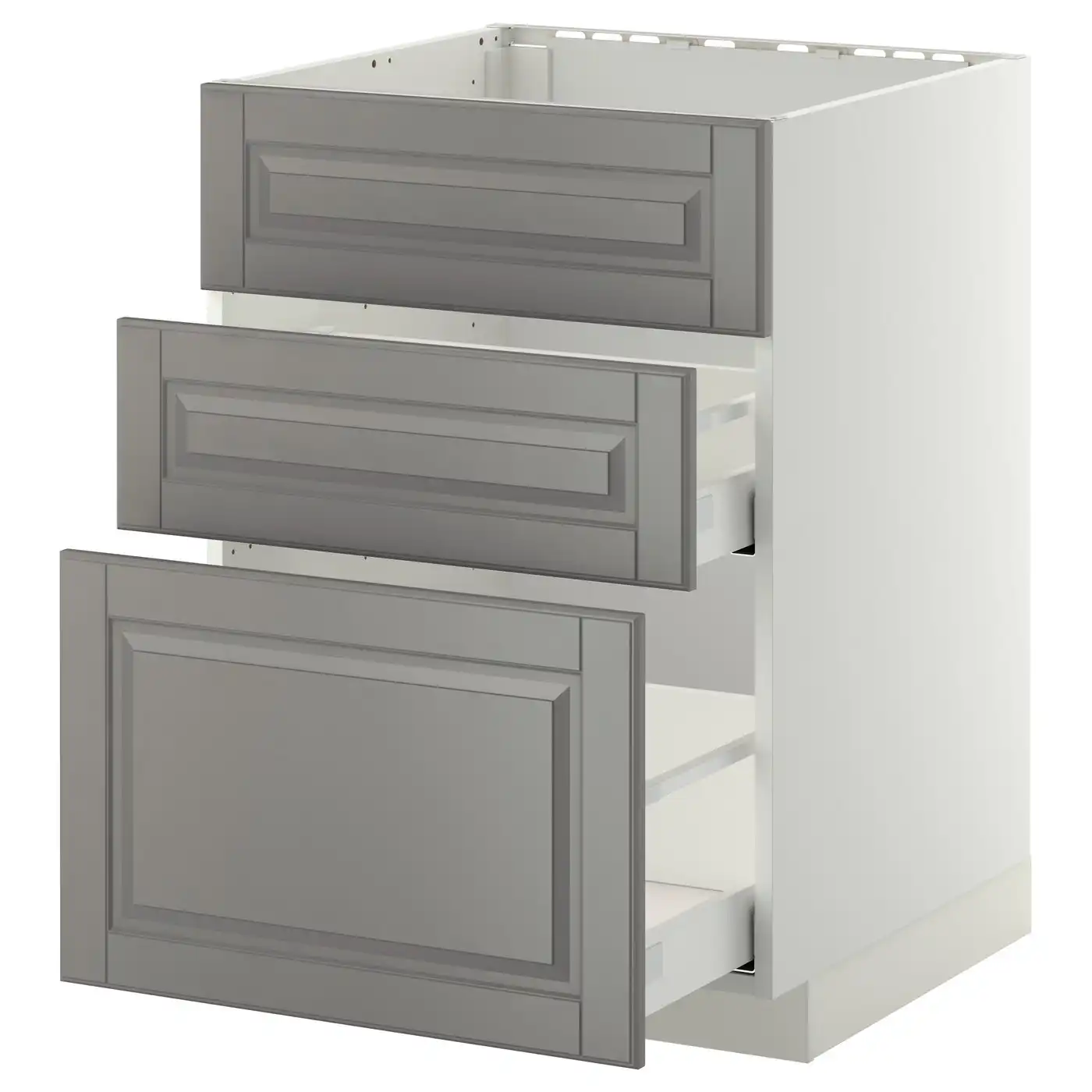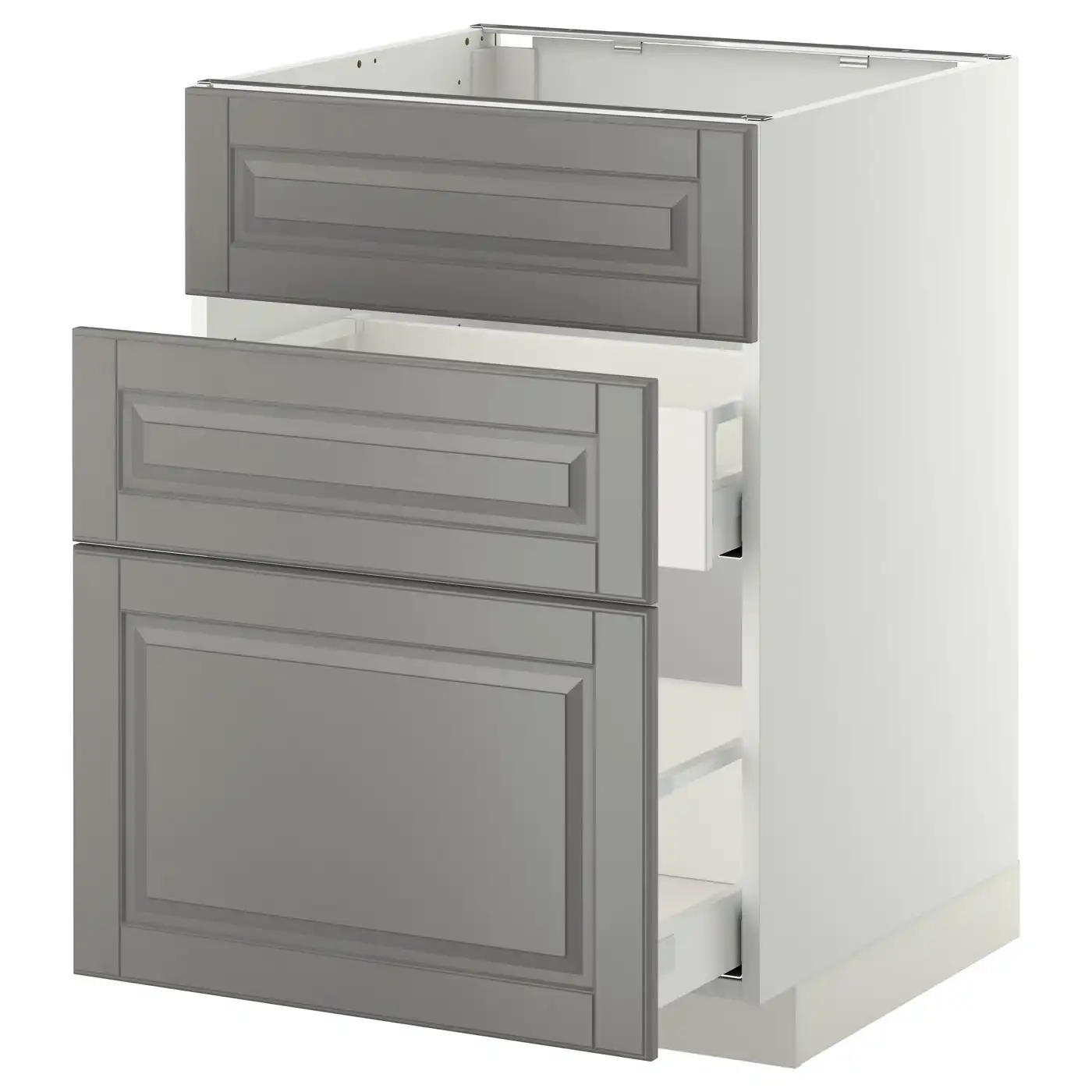 METOD / MAXIMERA Base cab f sink+3 fronts/2 drawers - white/Bodbyn grey 60x60 cm