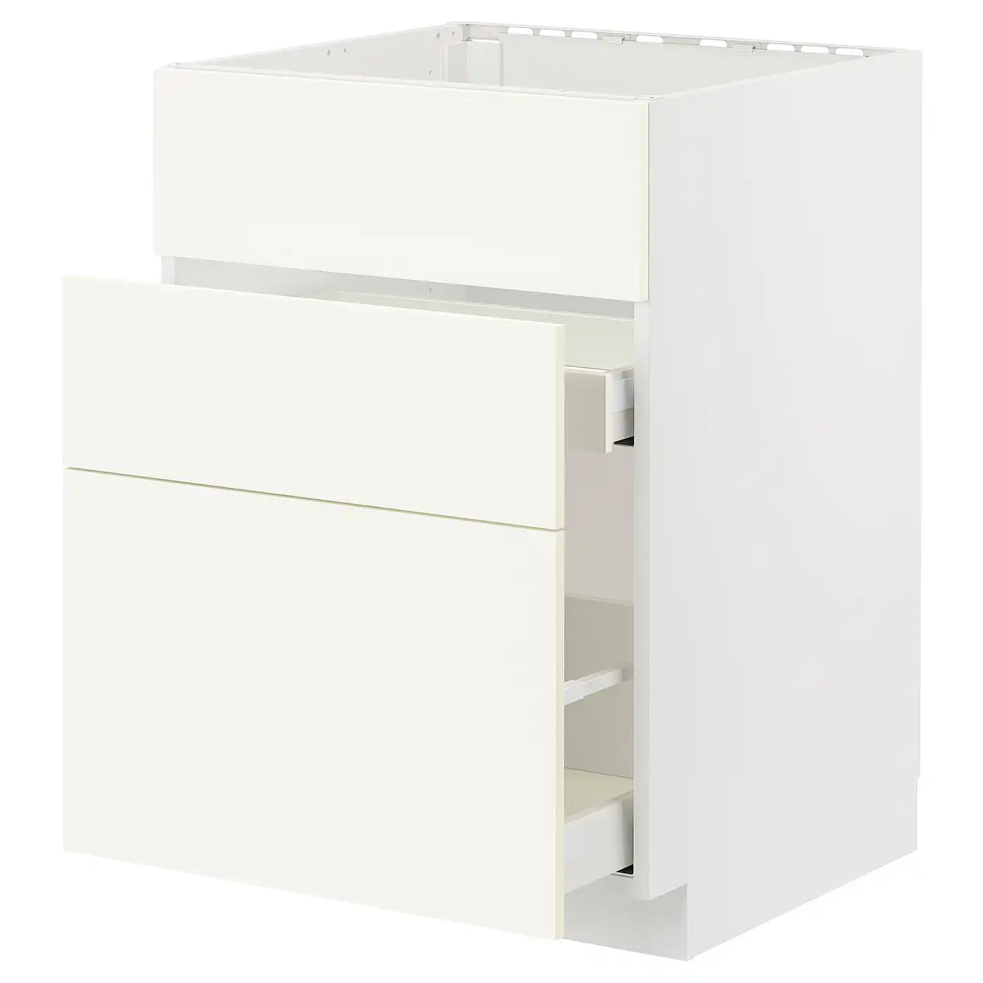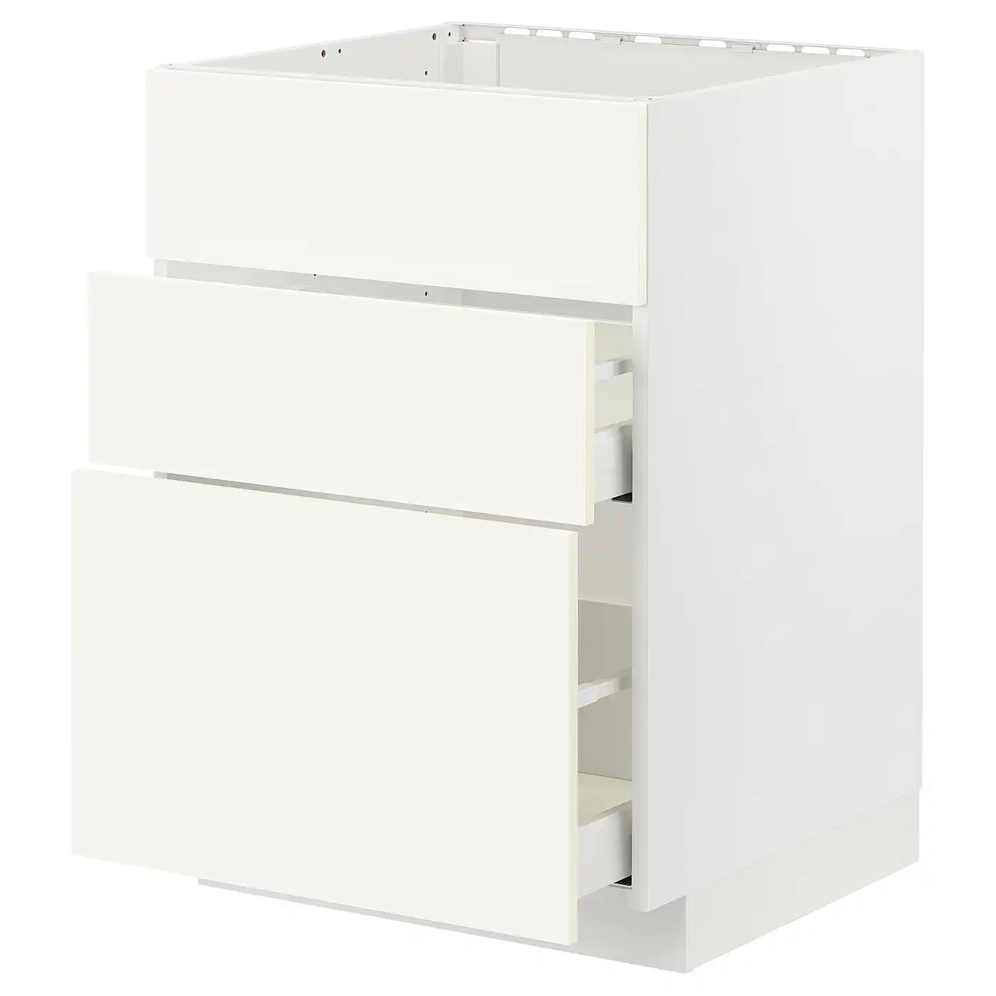 METOD / MAXIMERA Base cab f sink+3 fronts/2 drawers - white/Vallstena white 60x60 cm
