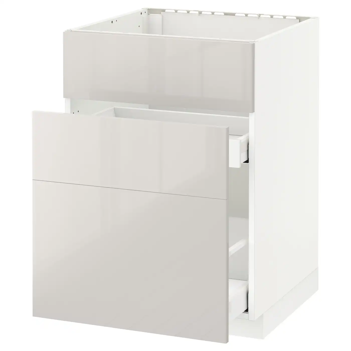METOD / MAXIMERA Base cab f sink+3 fronts/2 drawers - white/Ringhult light grey 60x60 cm