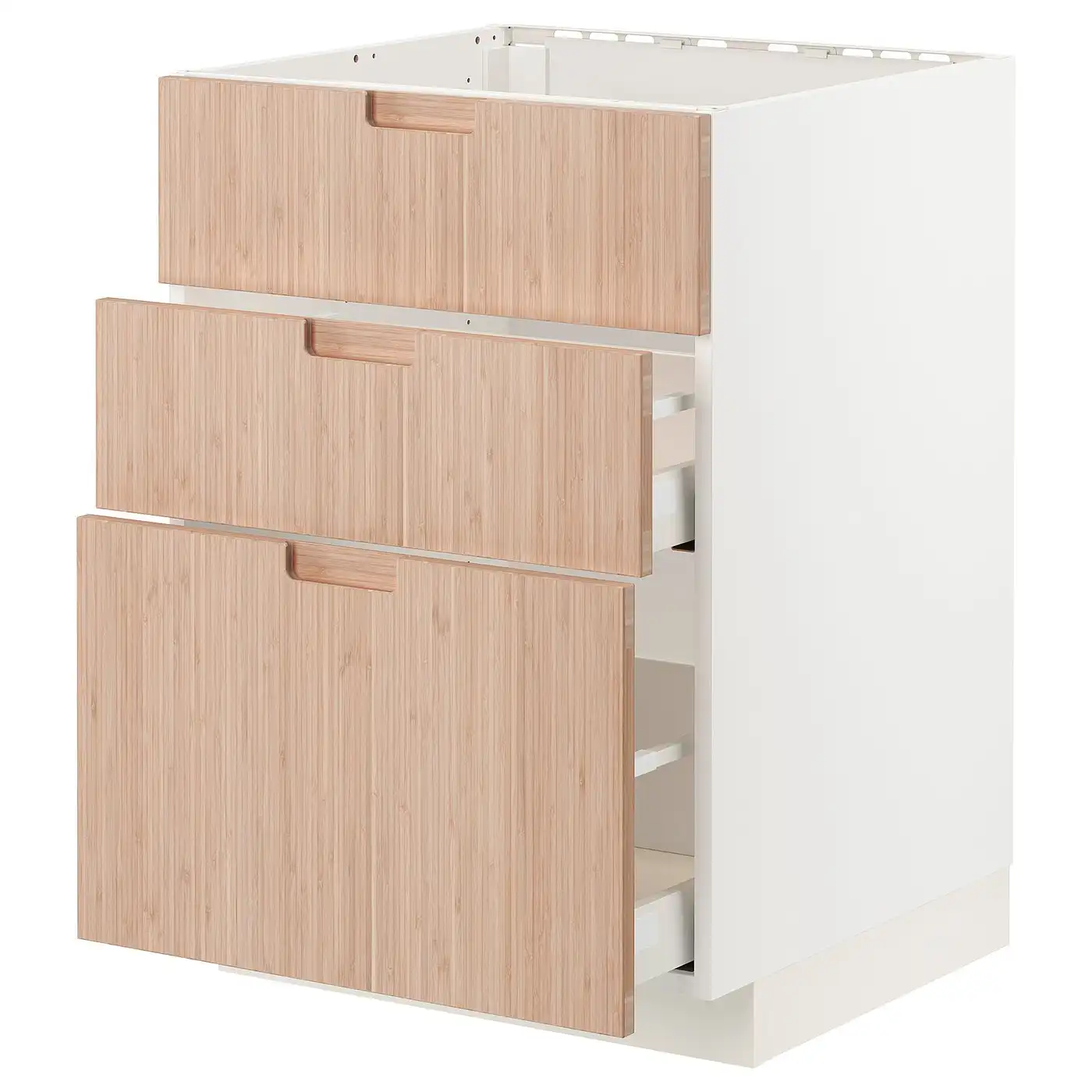 METOD / MAXIMERA Base cab f sink+3 fronts/2 drawers - white/Fröjered light bamboo 60x60 cm