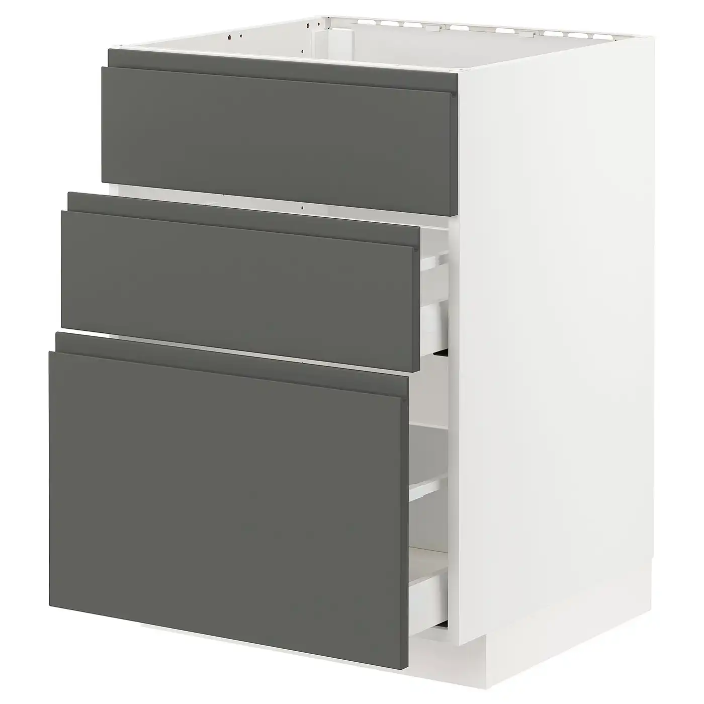 METOD / MAXIMERA Base cab f sink+3 fronts/2 drawers - white/Voxtorp dark grey 60x60 cm