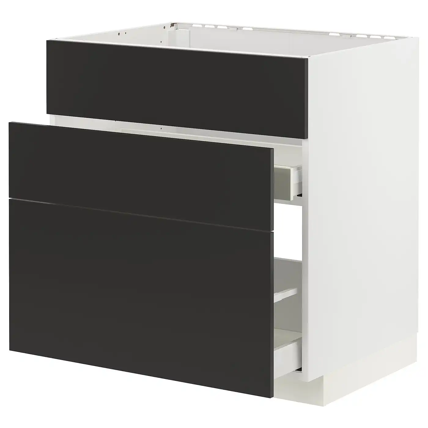 METOD / MAXIMERA Base cab f sink+3 fronts/2 drawers - white/Nickebo matt anthracite 80x60 cm