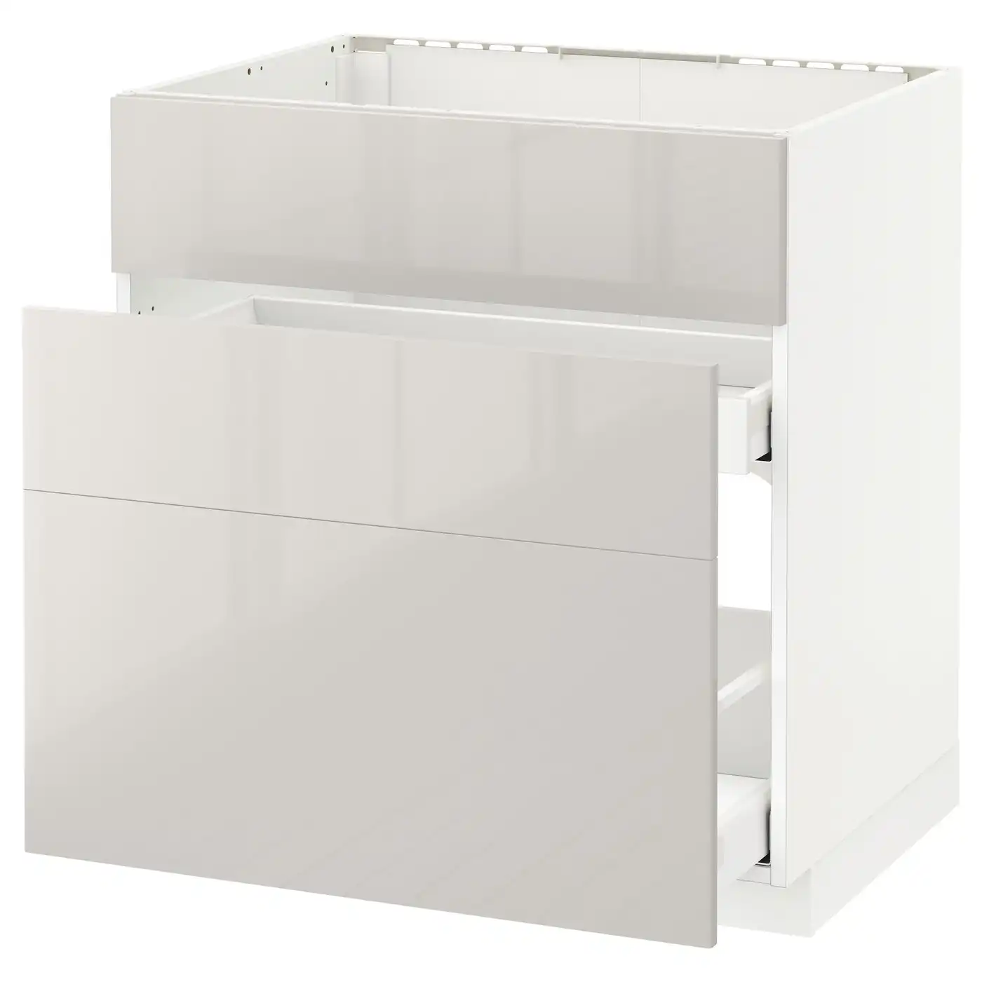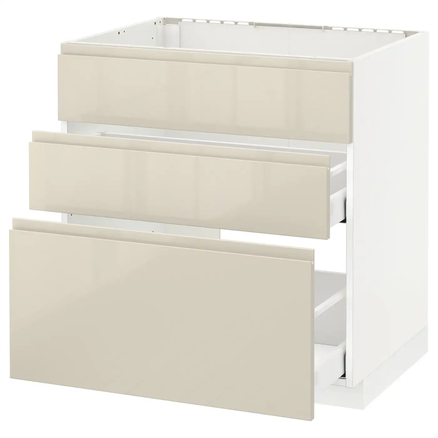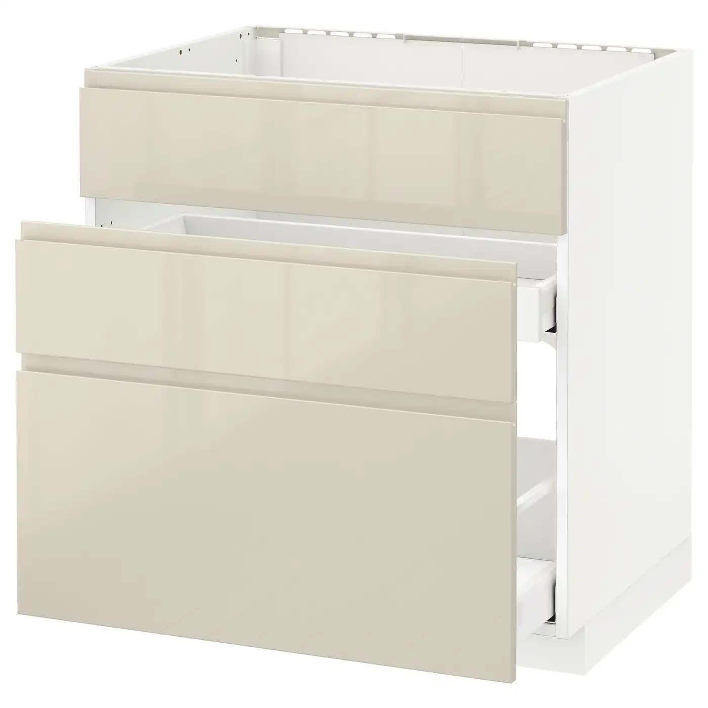 METOD / MAXIMERA Base cab f sink+3 fronts/2 drawers - white/Voxtorp high-gloss light beige 80x60 cm