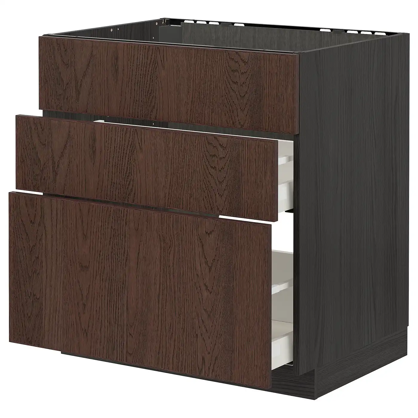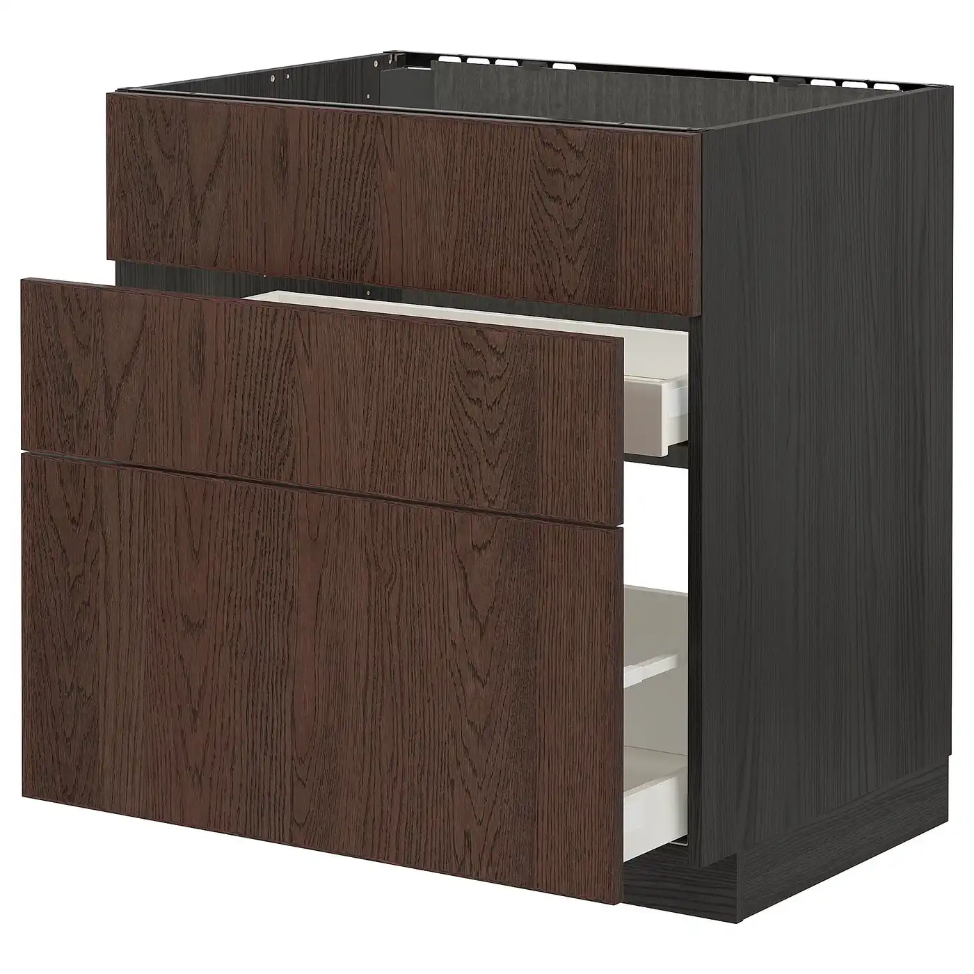 METOD / MAXIMERA Base cab f sink+3 fronts/2 drawers - black Enköping/brown walnut effect 80x60 cm