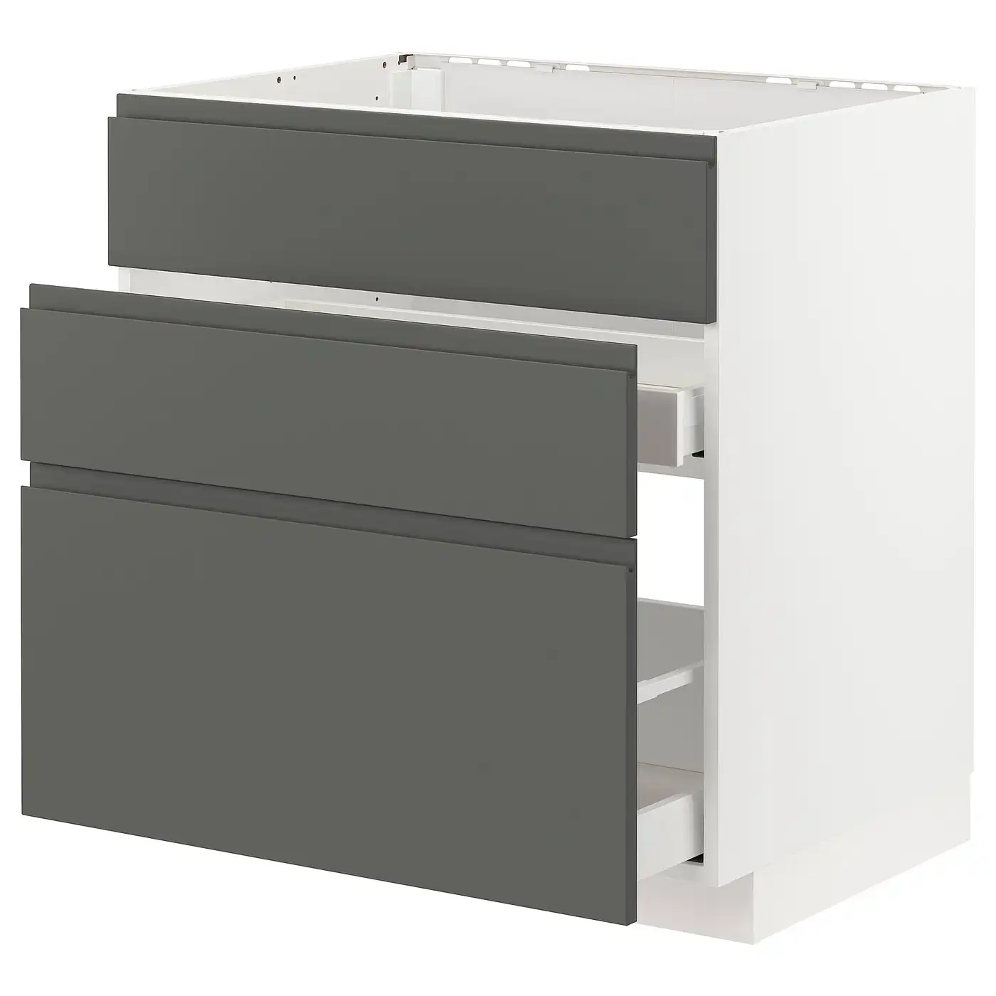 METOD / MAXIMERA Base cab f sink+3 fronts/2 drawers - white/Voxtorp dark grey 80x60 cm