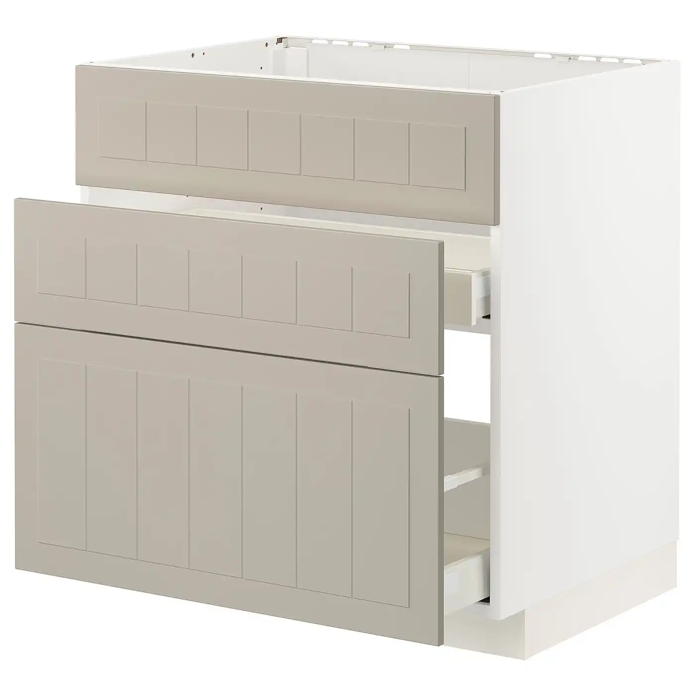 METOD / MAXIMERA Base cab f sink+3 fronts/2 drawers - white/Stensund beige 80x60 cm