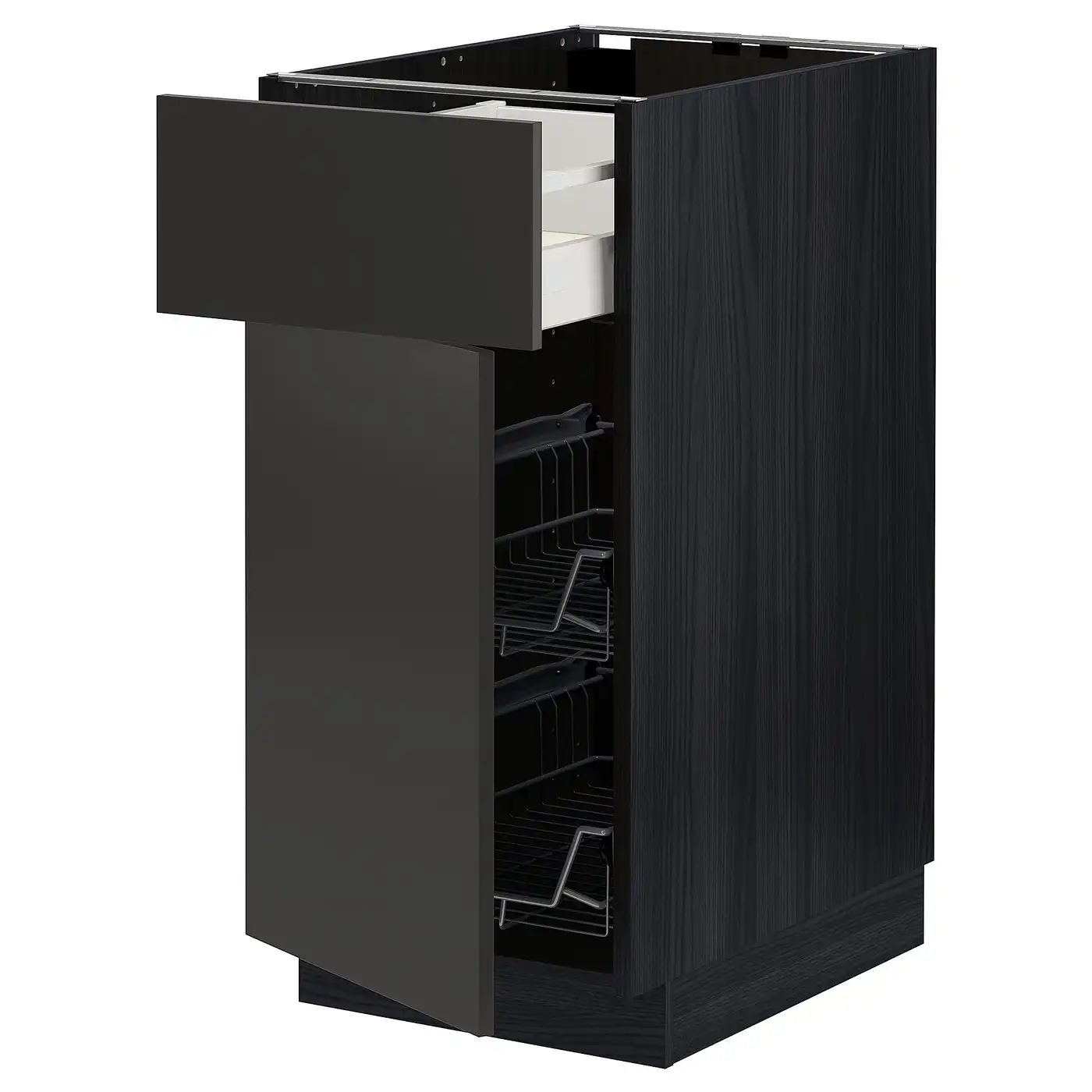 METOD / MAXIMERA Base cab w wire basket/drawer/door - black/Nickebo matt anthracite 40x60 cm