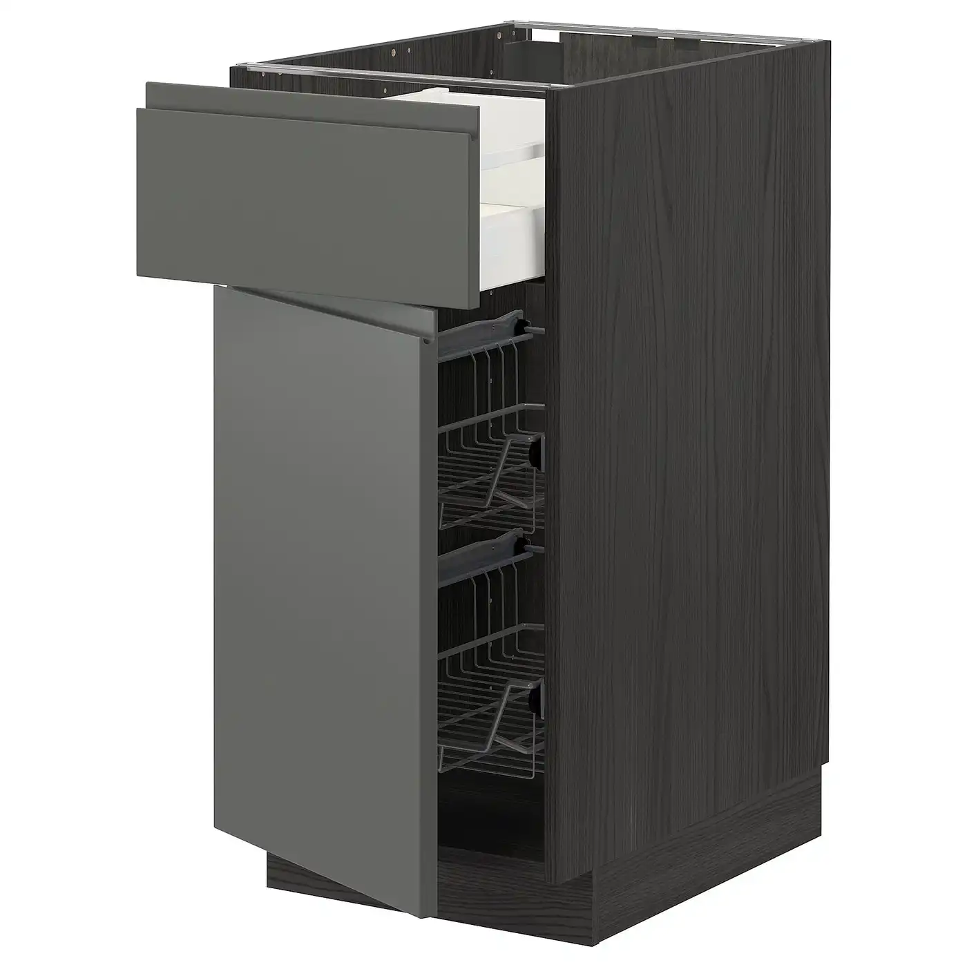 METOD / MAXIMERA Base cab w wire basket/drawer/door - black/Voxtorp dark grey 40x60 cm
