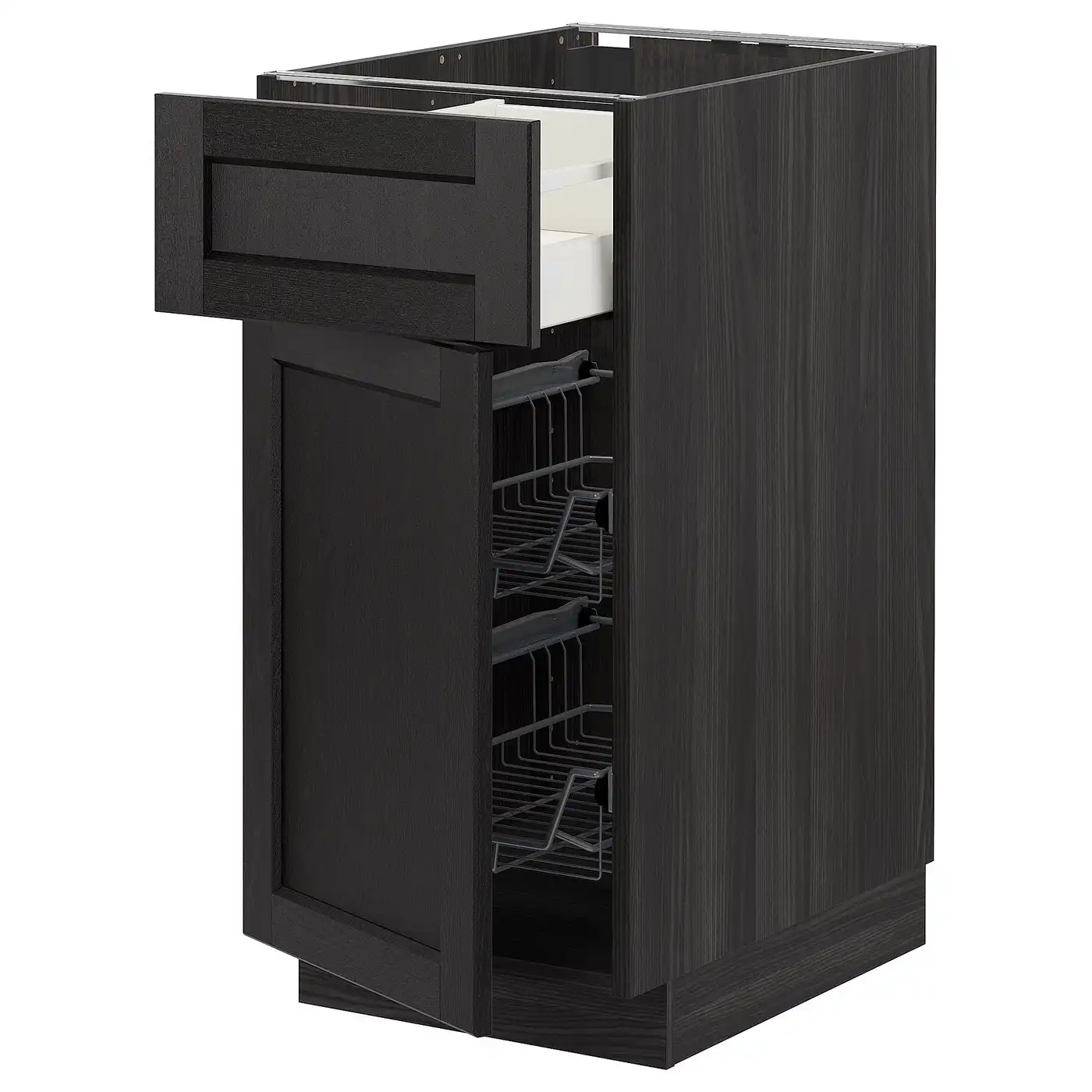 METOD / MAXIMERA Base cab w wire basket/drawer/door - black/Lerhyttan black stained 40x60 cm