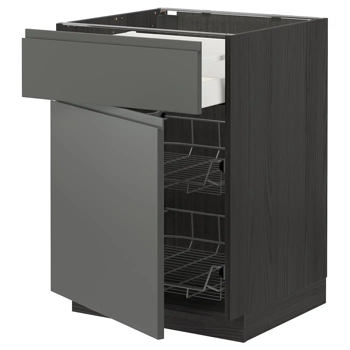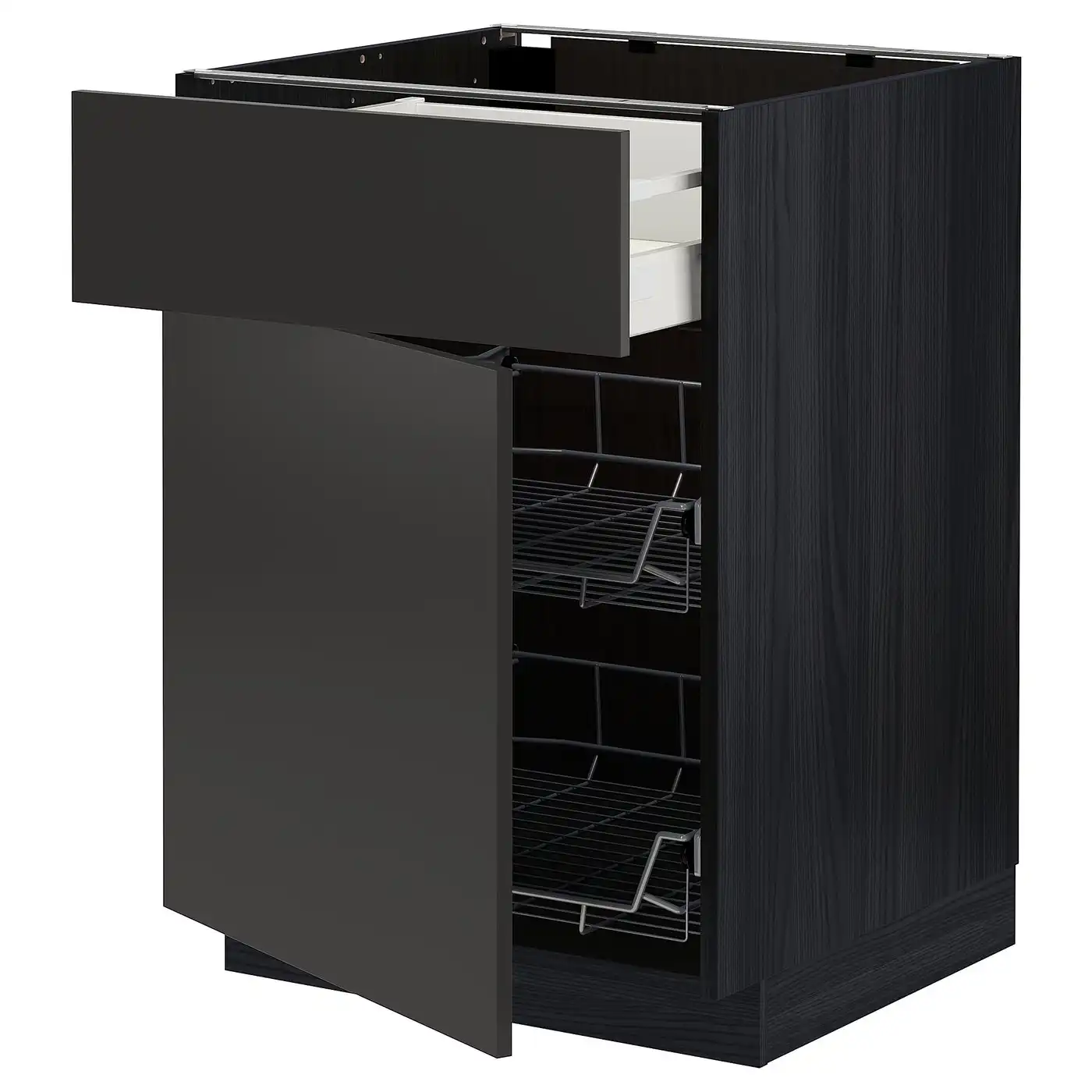 METOD / MAXIMERA Base cab w wire basket/drawer/door - black/Voxtorp dark grey 60x60 cm