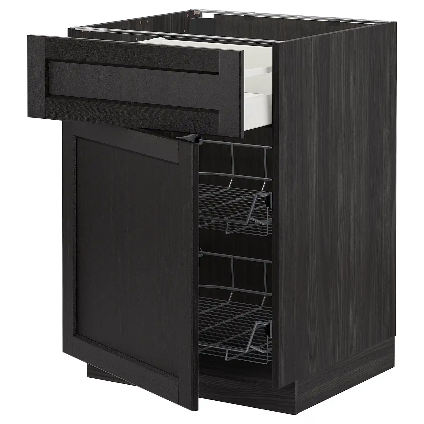 METOD / MAXIMERA Base cab w wire basket/drawer/door - black/Lerhyttan black stained 60x60 cm