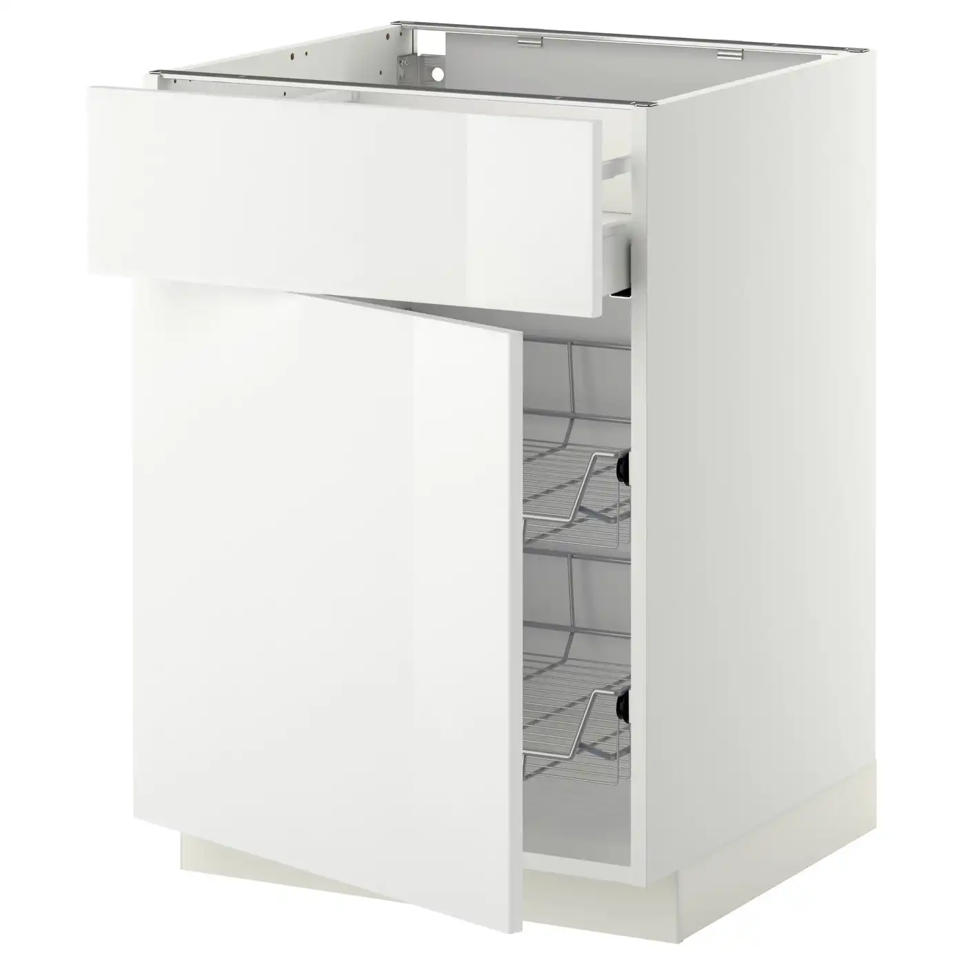 METOD / MAXIMERA Base cab w wire basket/drawer/door - white/Ringhult white 60x60 cm