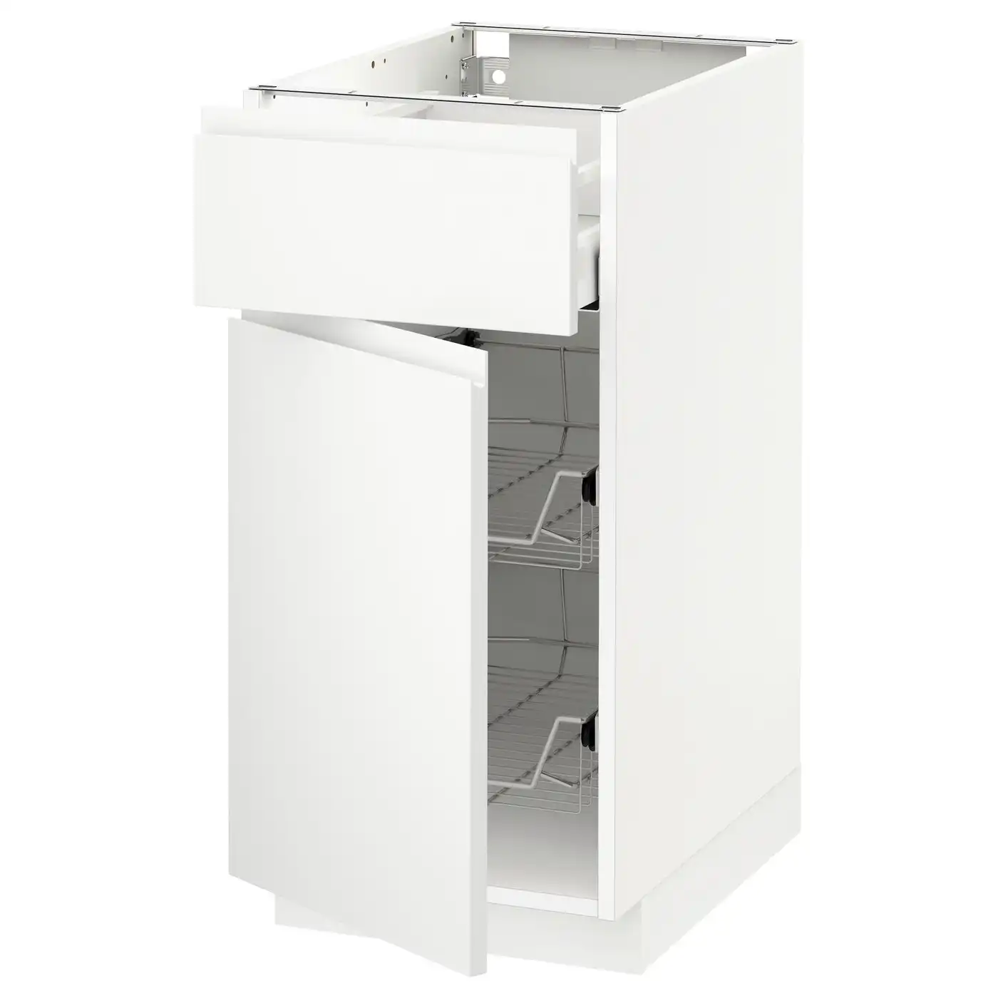 METOD / MAXIMERA Base cab w wire basket/drawer/door - white/Voxtorp matt white 40x60 cm