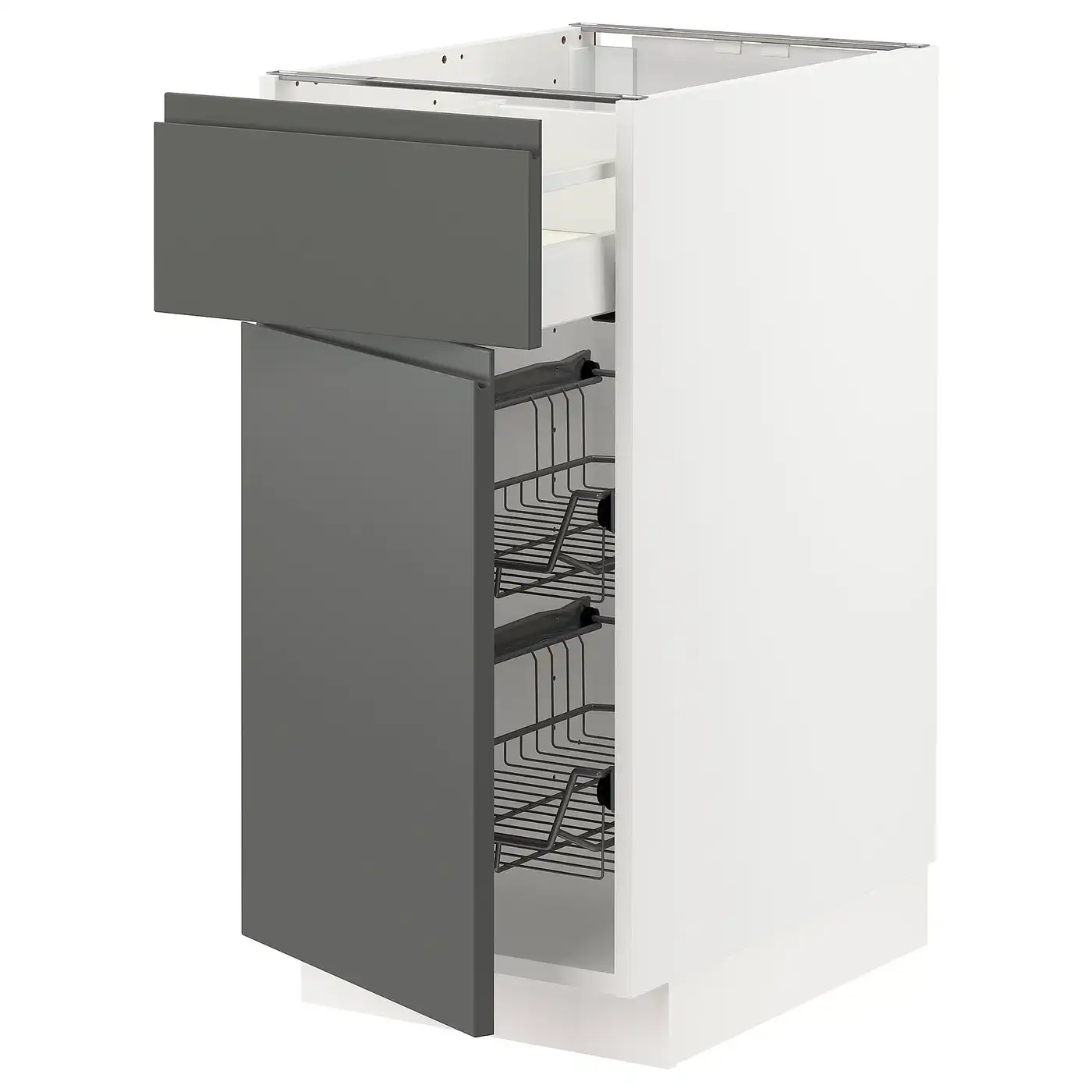 METOD / MAXIMERA Base cab w wire basket/drawer/door - white/Voxtorp dark grey 40x60 cm