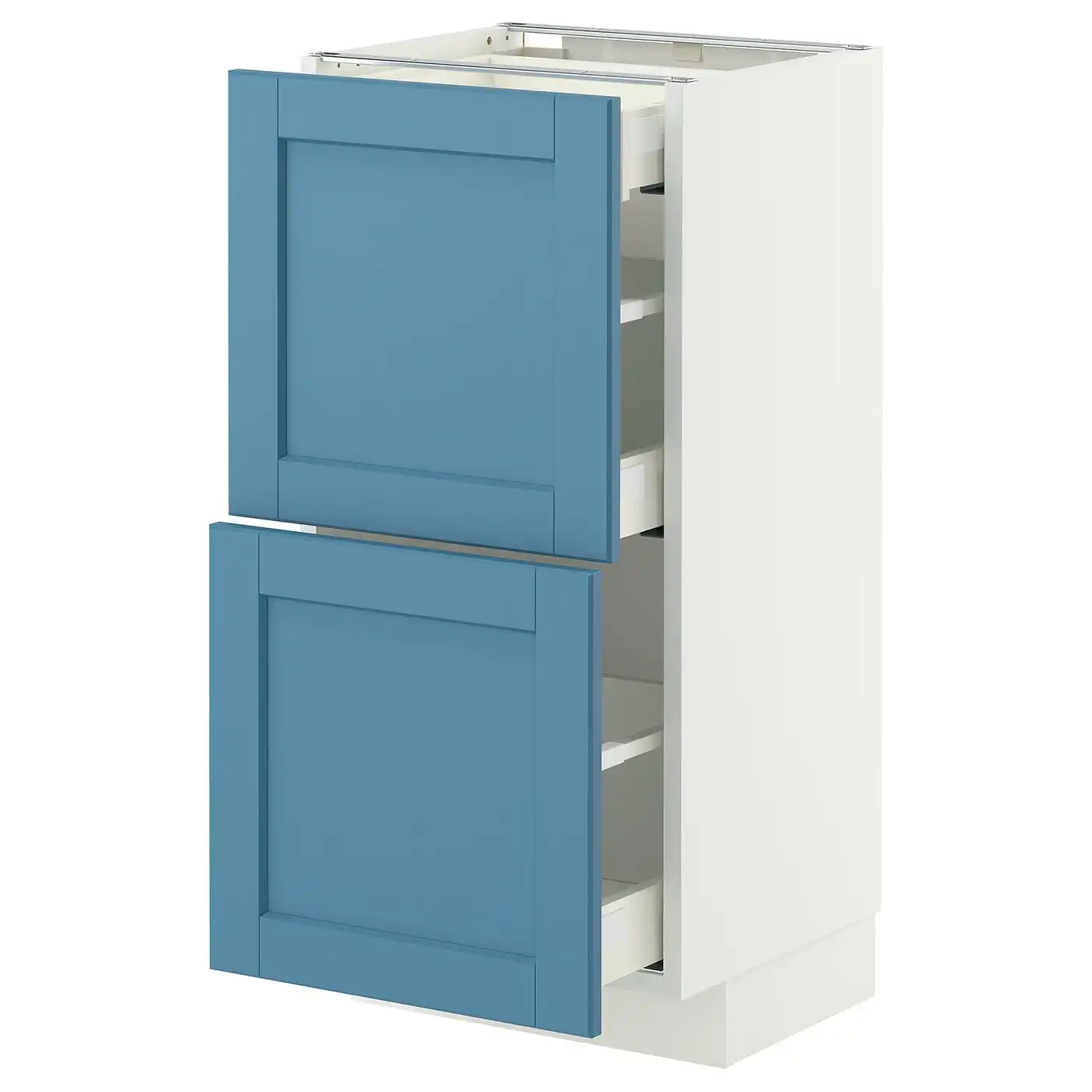 IKEA METOD Base cabinet with 2 fronts and 3 drawers 40x37 cm MAXIMERA white/LERHYTTAN blue
