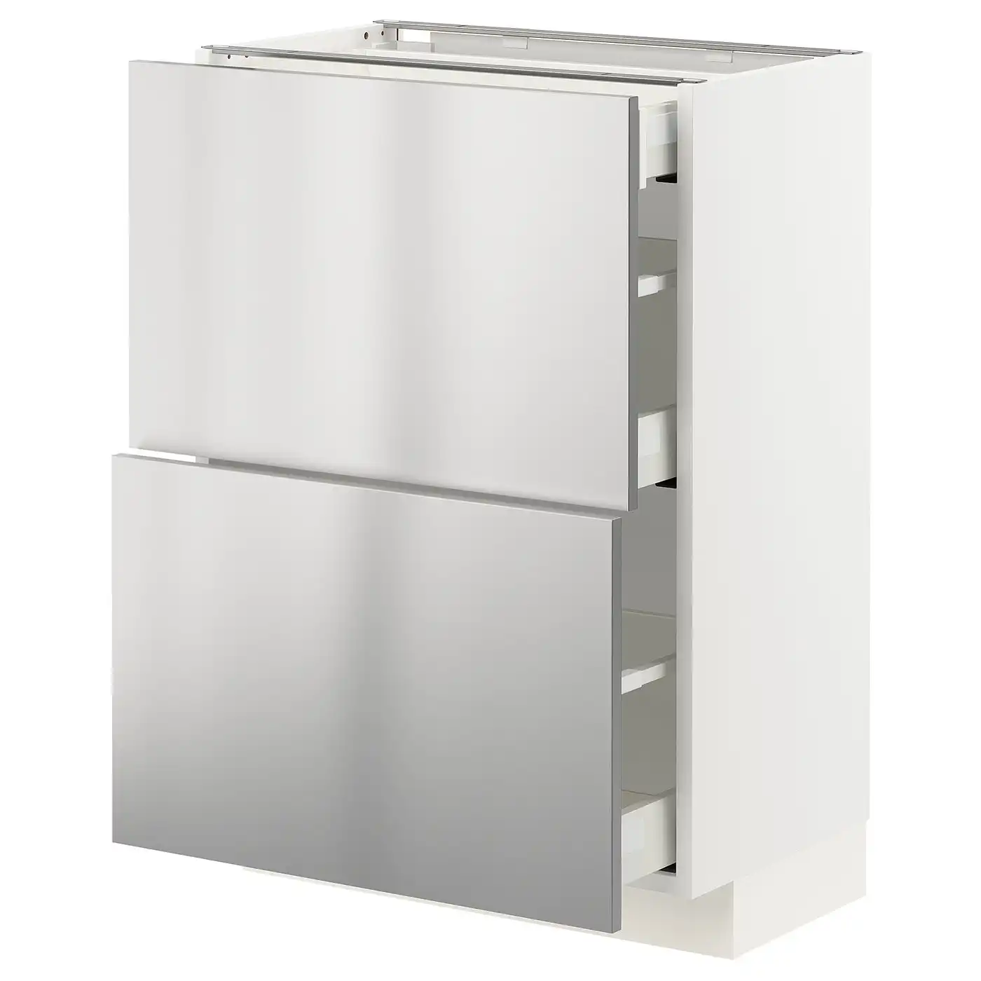 METOD / MAXIMERA Base cab with 2 fronts/3 drawers - white/Vårsta stainless steel 60x37 cm