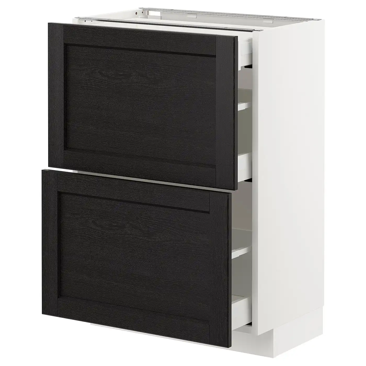 METOD / MAXIMERA Base cab with 2 fronts/3 drawers - white/Lerhyttan black stained 60x37 cm