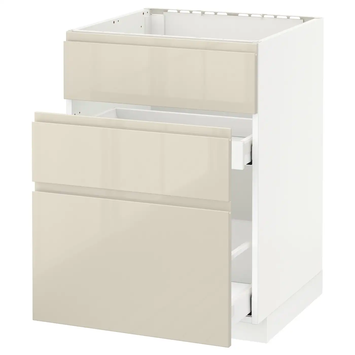 METOD / MAXIMERA Base cabinet with 3 drawers - white/Voxtorp high-gloss light beige 60x60 cm
