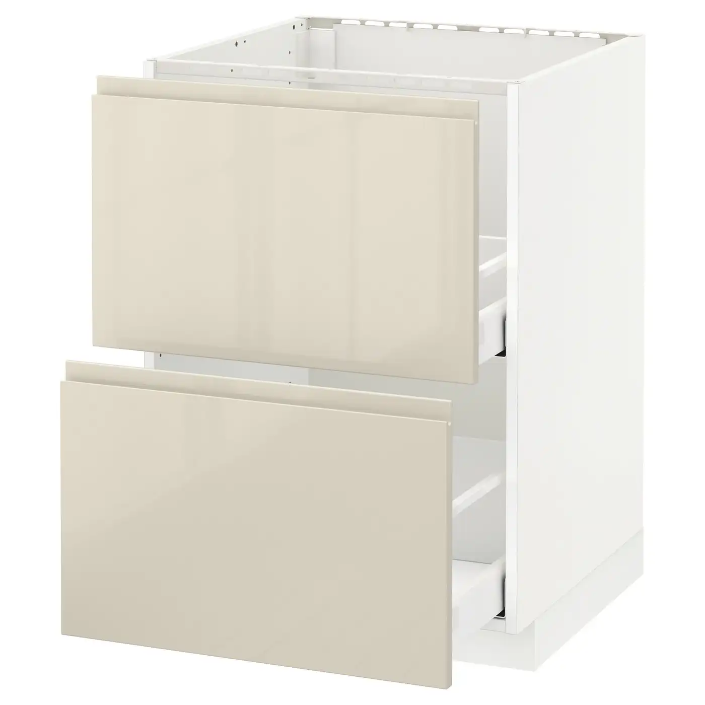 METOD / MAXIMERA Base cab f sink+2 fronts/2 drawers - white/Voxtorp high-gloss light beige 60x60 cm
