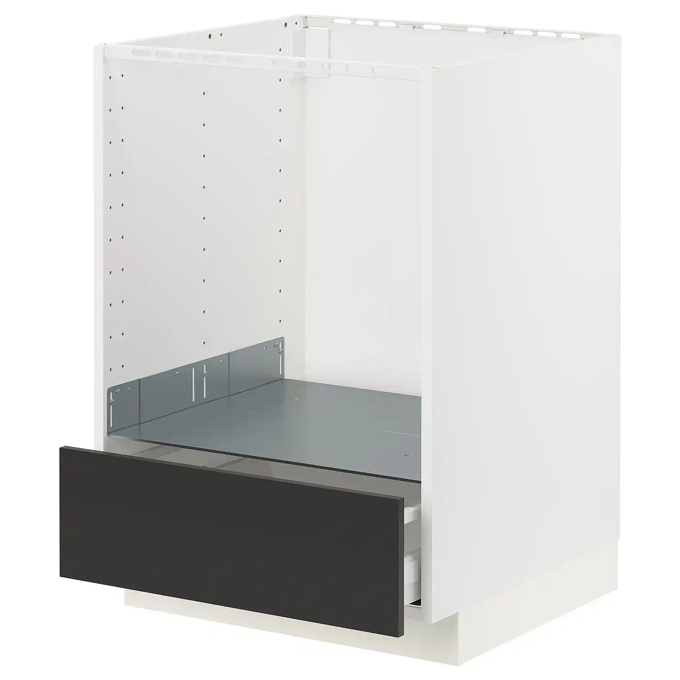 METOD / MAXIMERA Base cabinet for oven with drawer - white/Nickebo matt anthracite 60x60 cm
