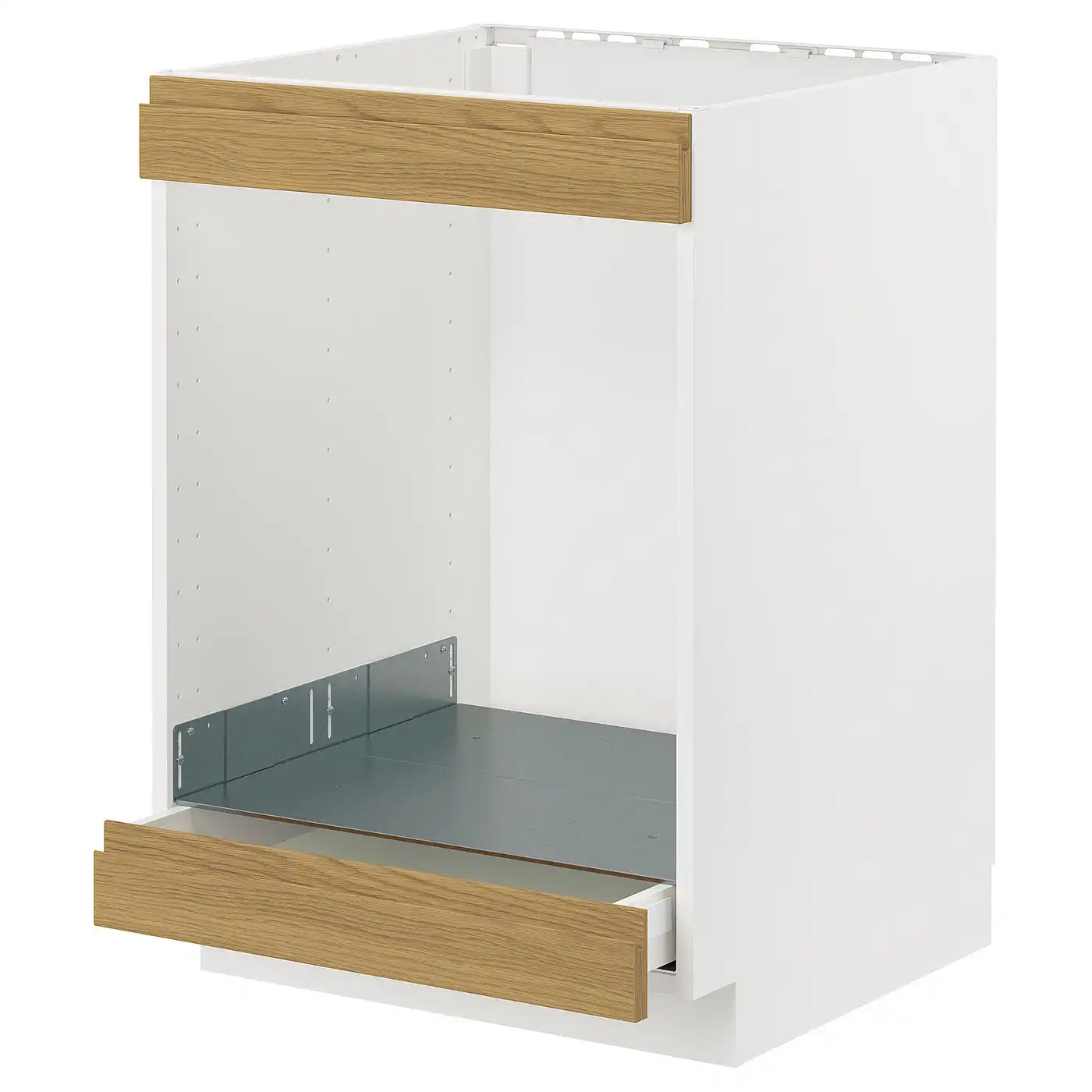 METOD / MAXIMERA Base cabinet for oven with drawer - white/Voxtorp oak effect 60x60 cm