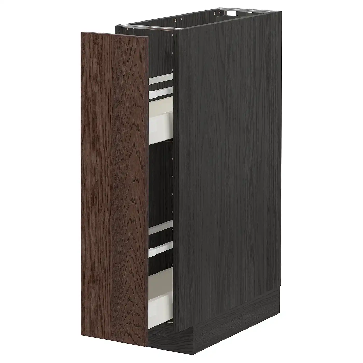 METOD / MAXIMERA Base cabinet/pull-out int fittings - black Enköping/brown walnut effect 20x60 cm