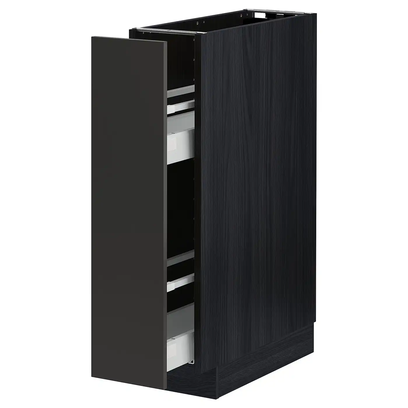 METOD / MAXIMERA Base cabinet/pull-out int fittings - black/Nickebo matt anthracite 20x60 cm