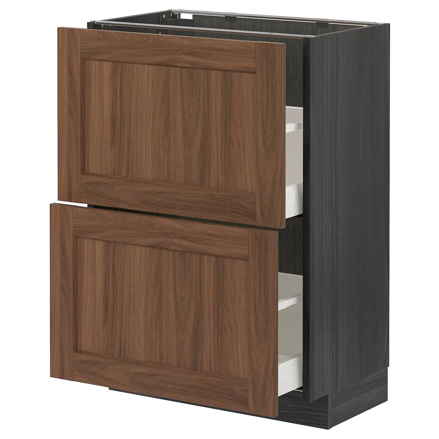 IKEA METOD Base cabinet with 2 drawers 60x37 cm MAXIMERA black/ENKÖPING brown walnut effect