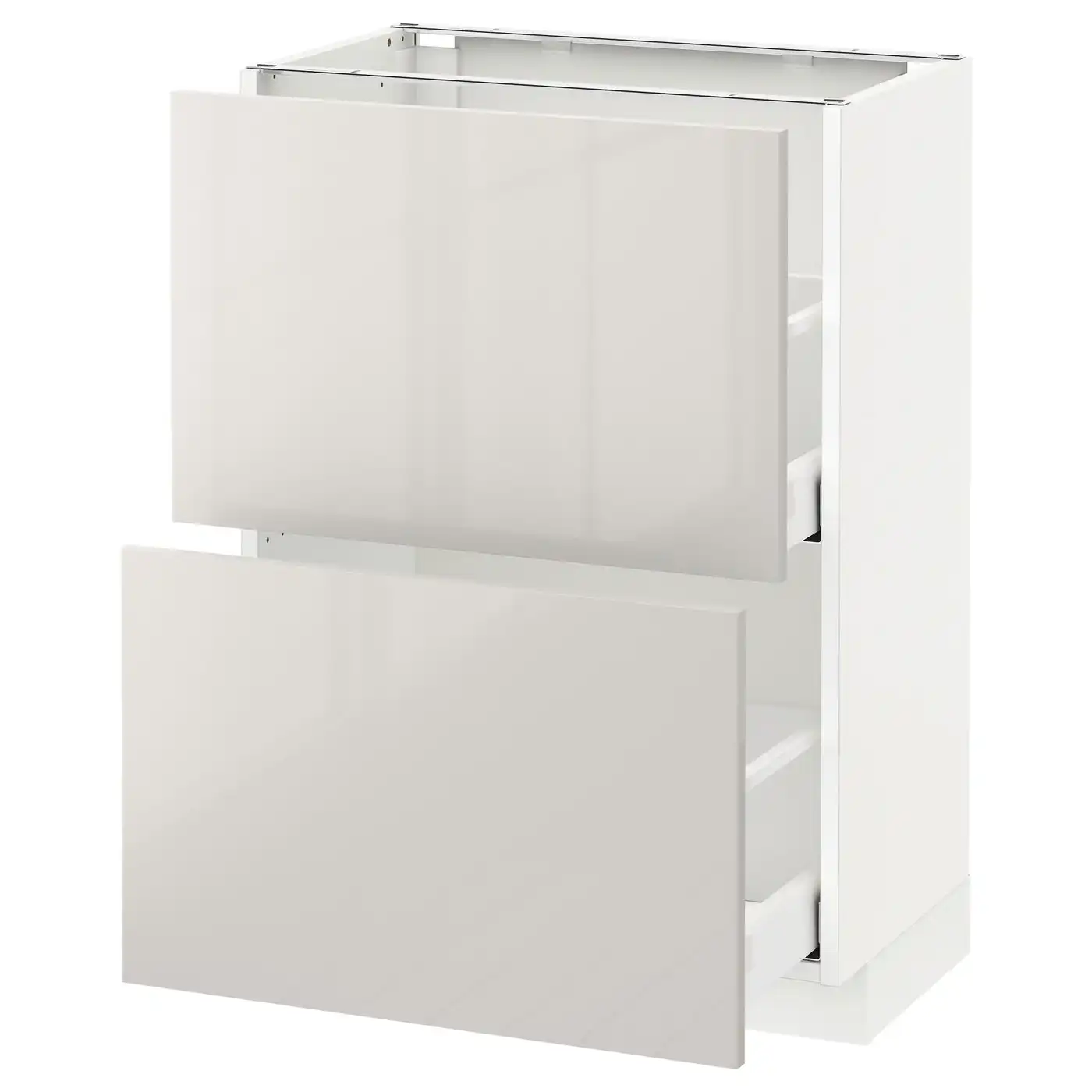 IKEA METOD Base cabinet with 2 drawers 60x37 cm MAXIMERA white/RINGHULT light grey
