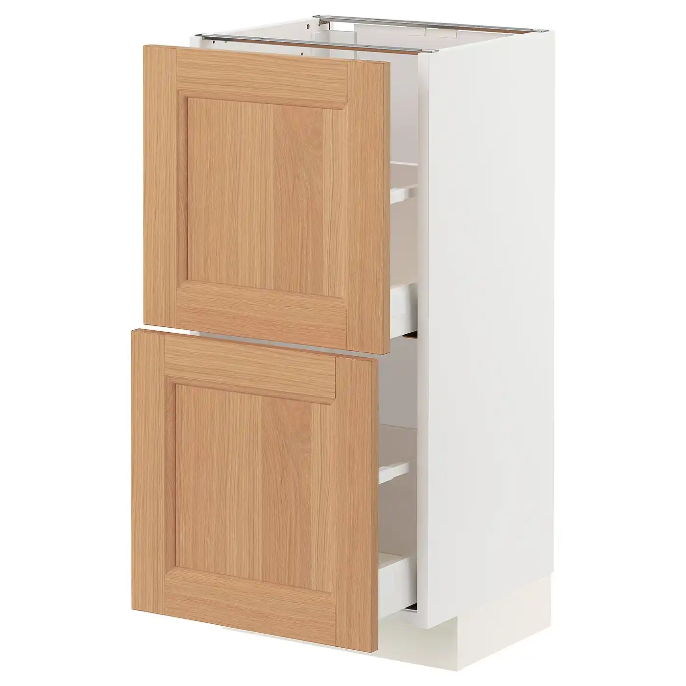IKEA METOD Base cabinet with 2 drawers 40x37 cm MAXIMERA white/VEDHAMN oak