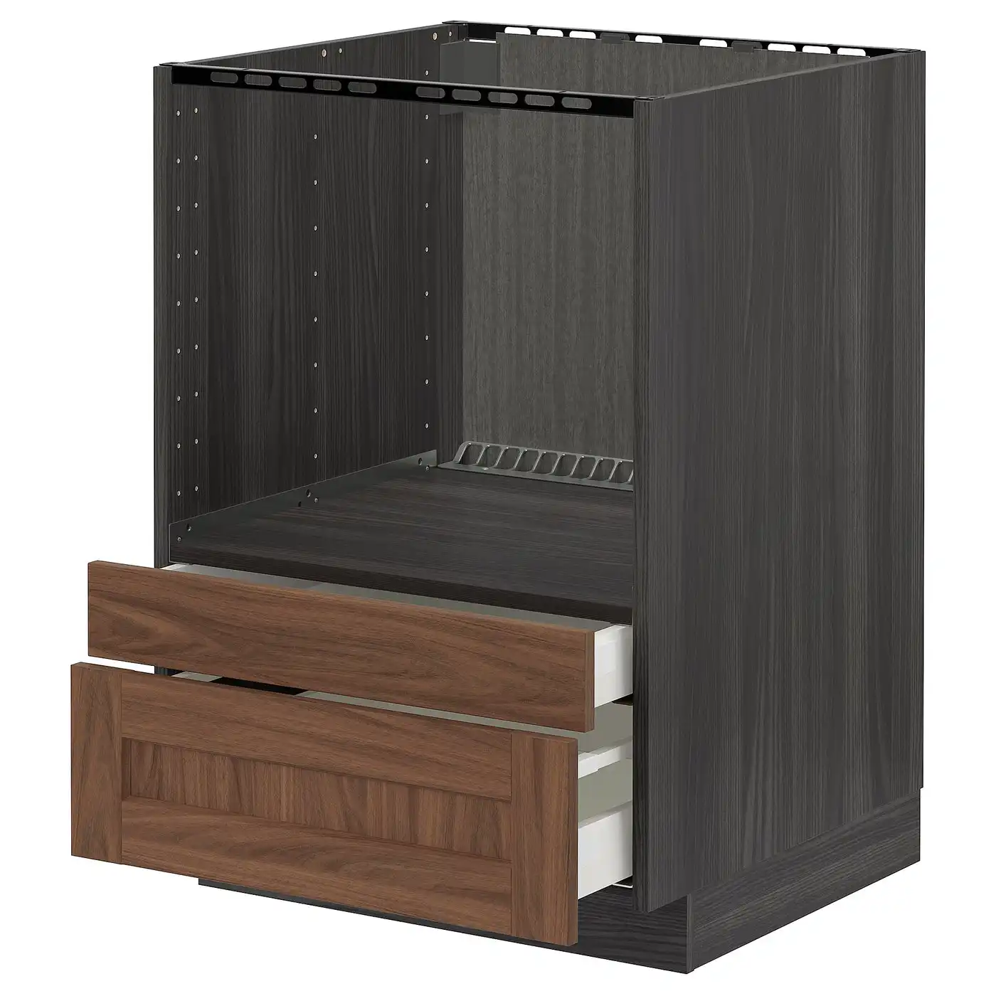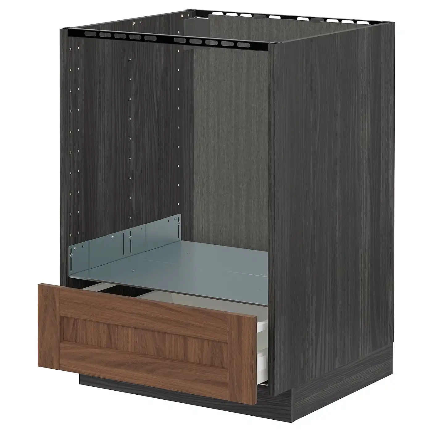 METOD / MAXIMERA Base cabinet for oven with drawer - black Enköping/brown walnut effect 60x60 cm