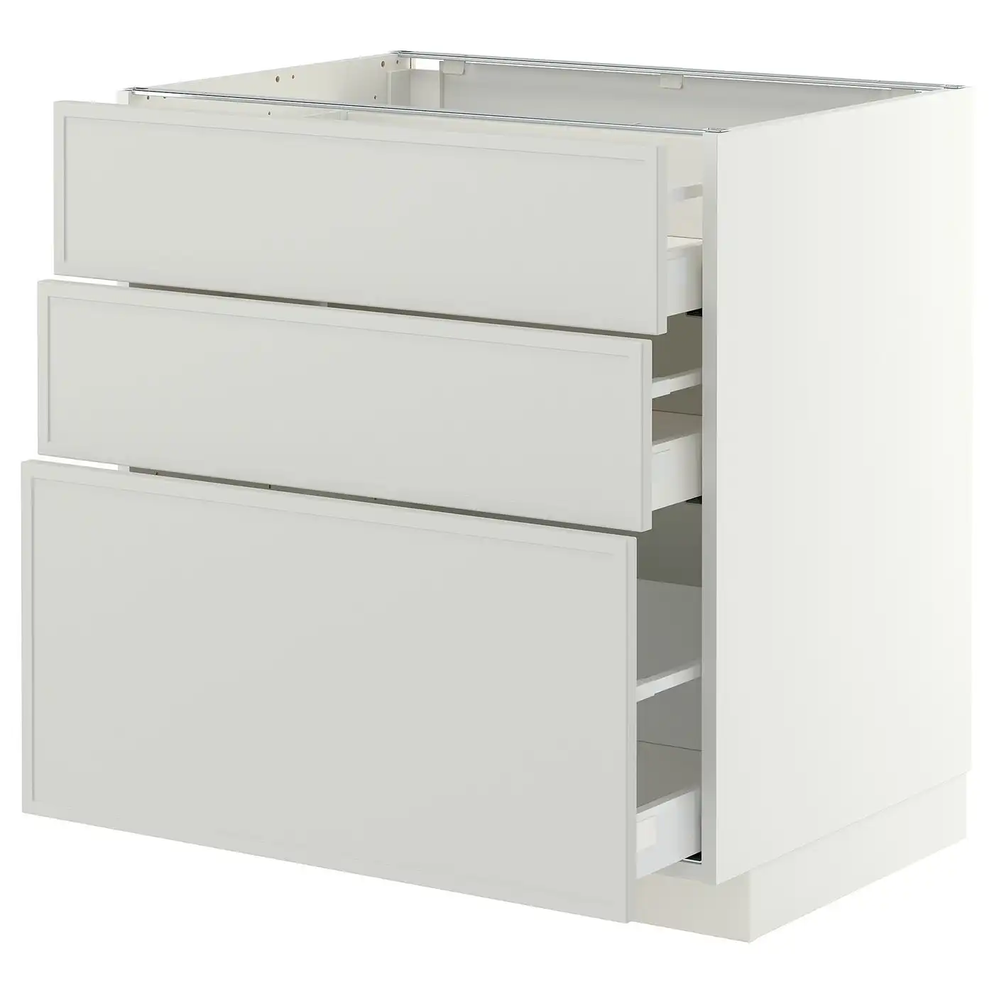 IKEA METOD Base cabinet with 3 drawers 80x60 cm MAXIMERA white/ASPUDDEN light grey