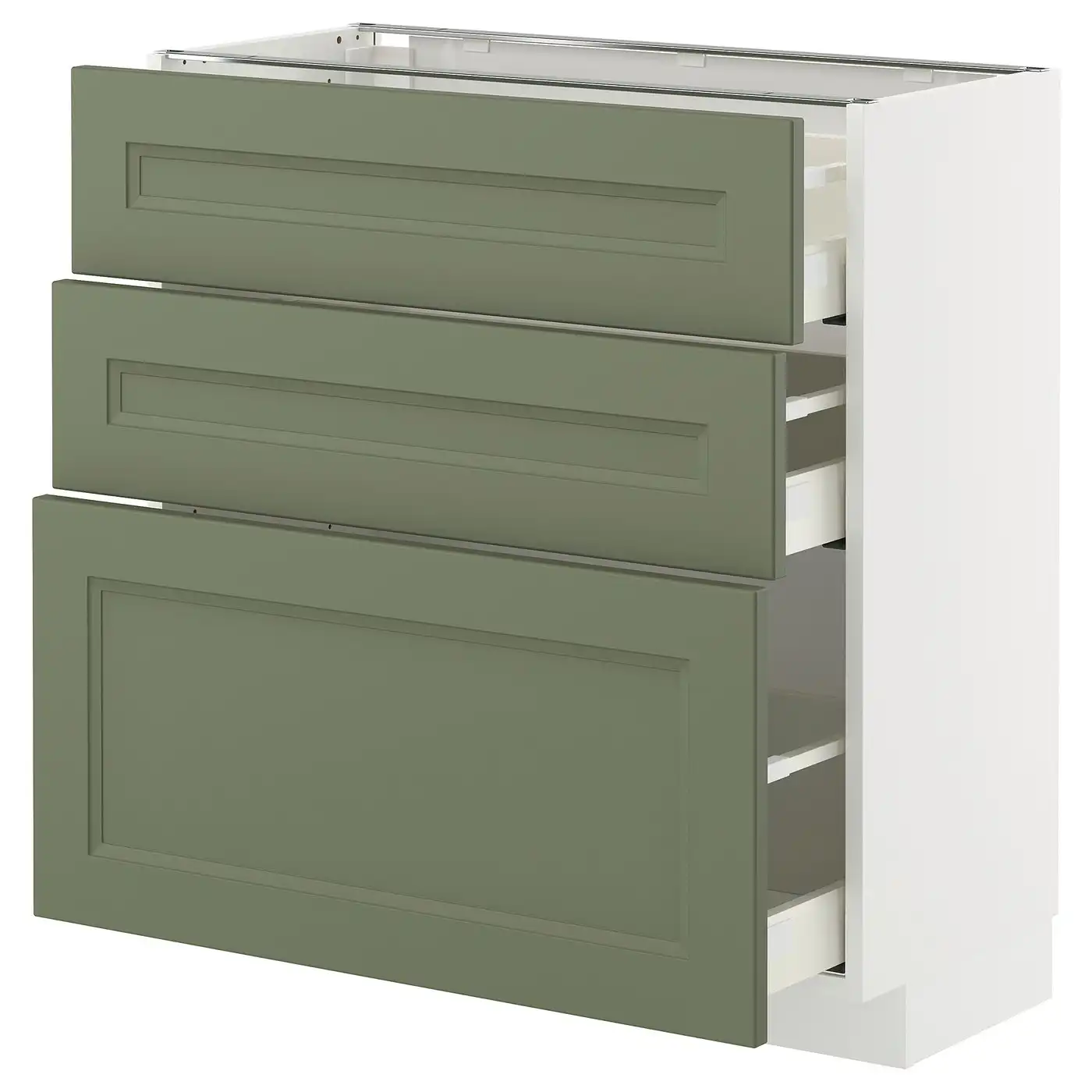 IKEA METOD Base cabinet with 3 drawers 80x37 cm MAXIMERA white/AXSTAD grey-green